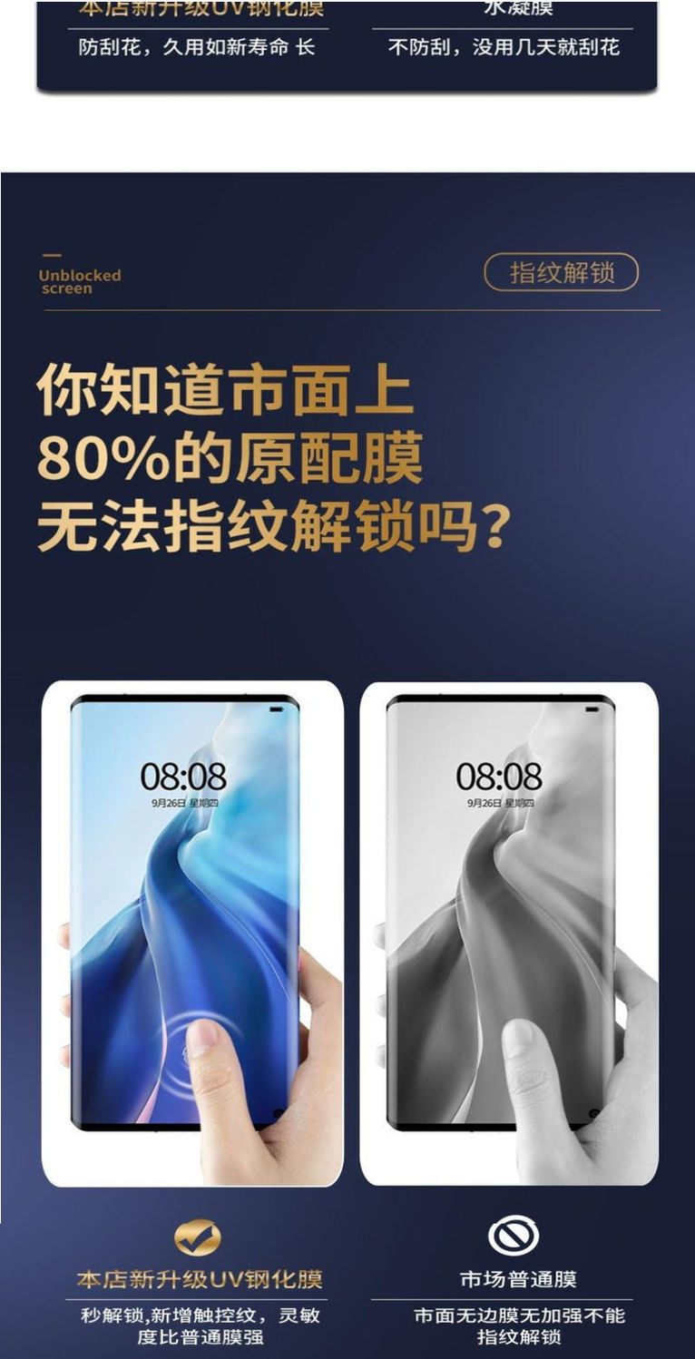 兩片-【超清款】新UV鋼化膜指紋秒解
