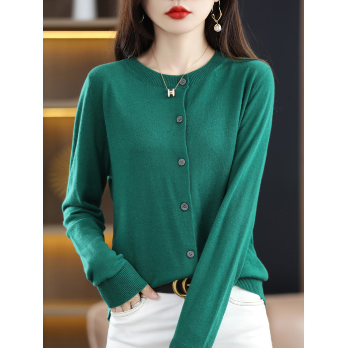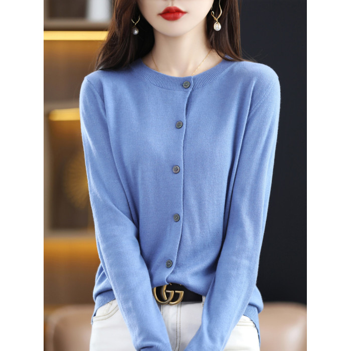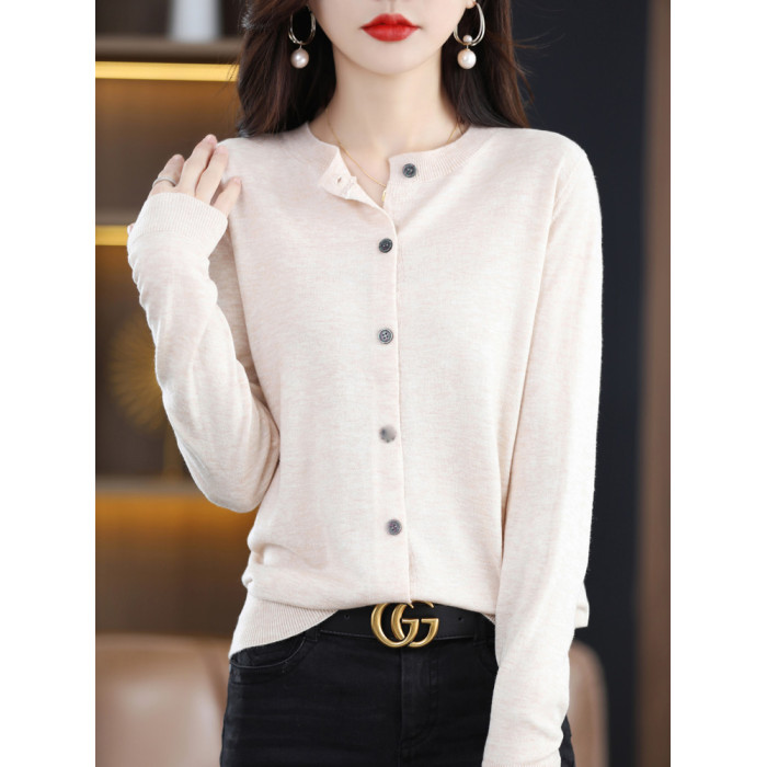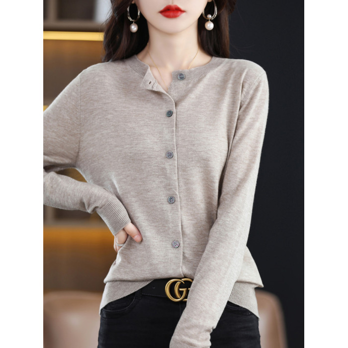 羊毛針織開衫外套女薄款打底衫洋氣時尚2025春季新款短款上衣外搭