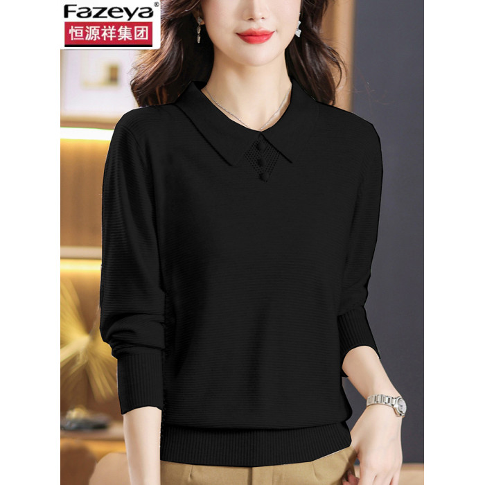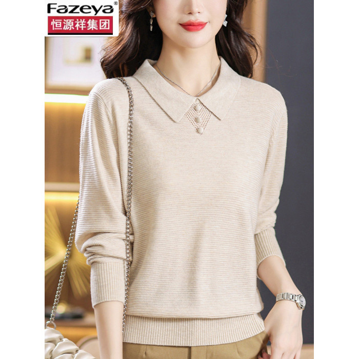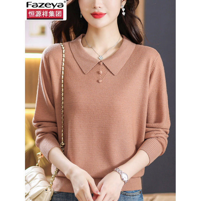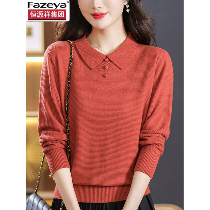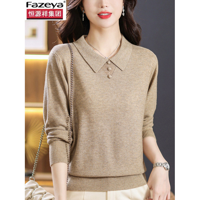 恒源祥彩羊羊毛衫上衣女秋裝2025新款女裝媽媽翻領毛衣針織打底衫