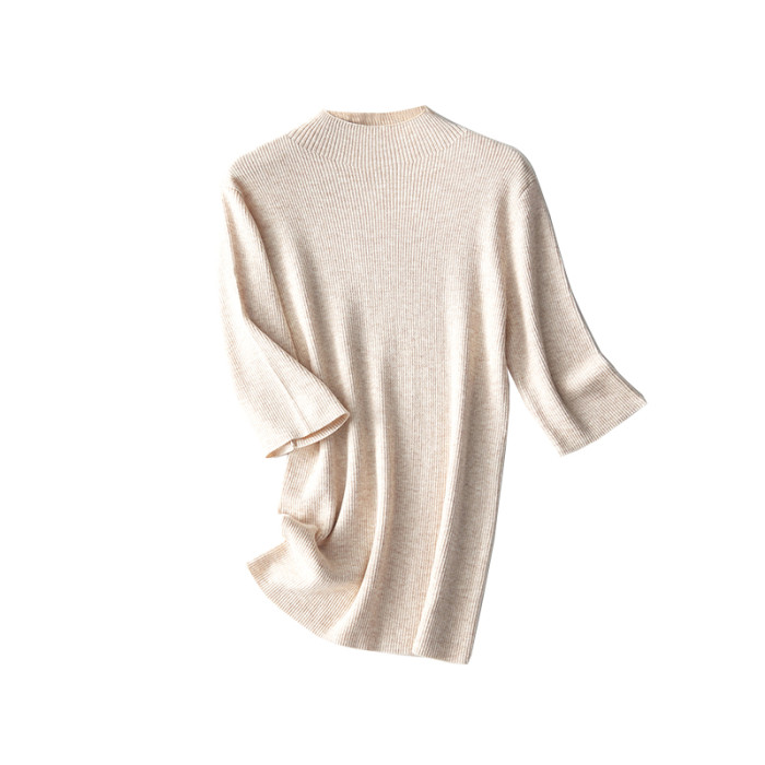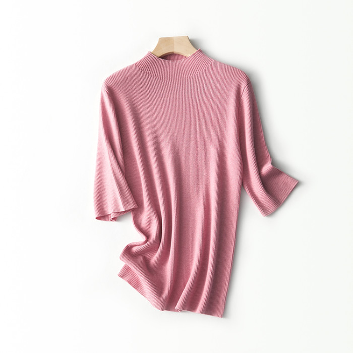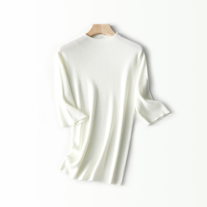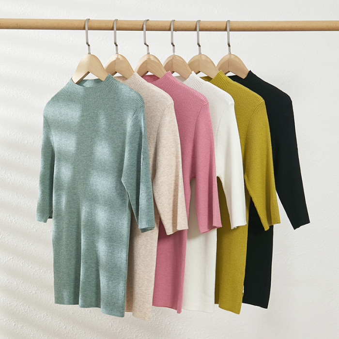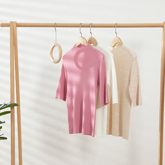 福利款~輕盈軟糯舒適~氣質薄款彈力修身顯瘦小高領半袖針織打底衫