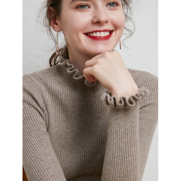 洋氣花邊半高領打底衫女2024新款秋冬加厚羊毛針織衫內搭修身毛衣