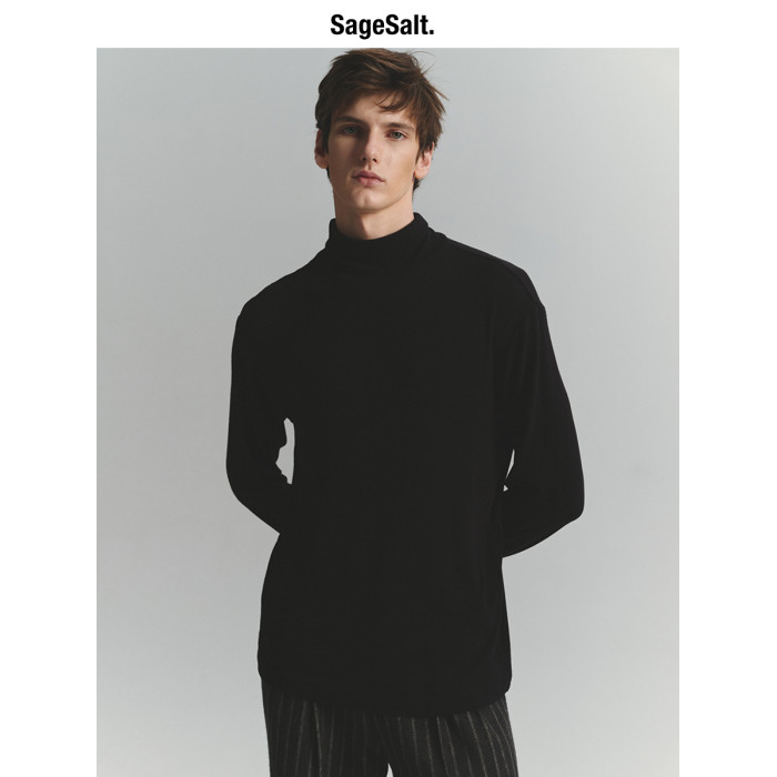 SageSalt 早秋限定系列 天使羊毛混紡高領打底衫 墨黑色 4010BK