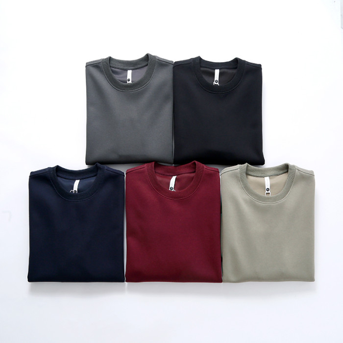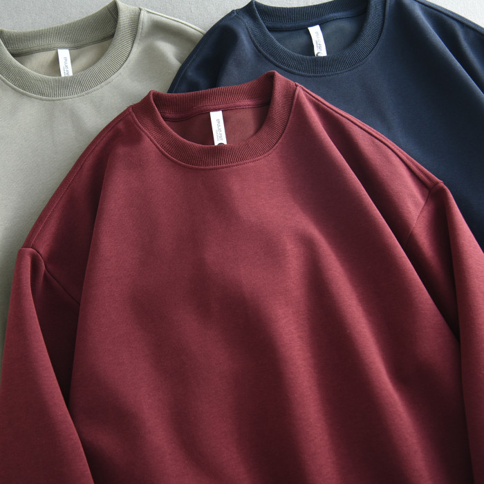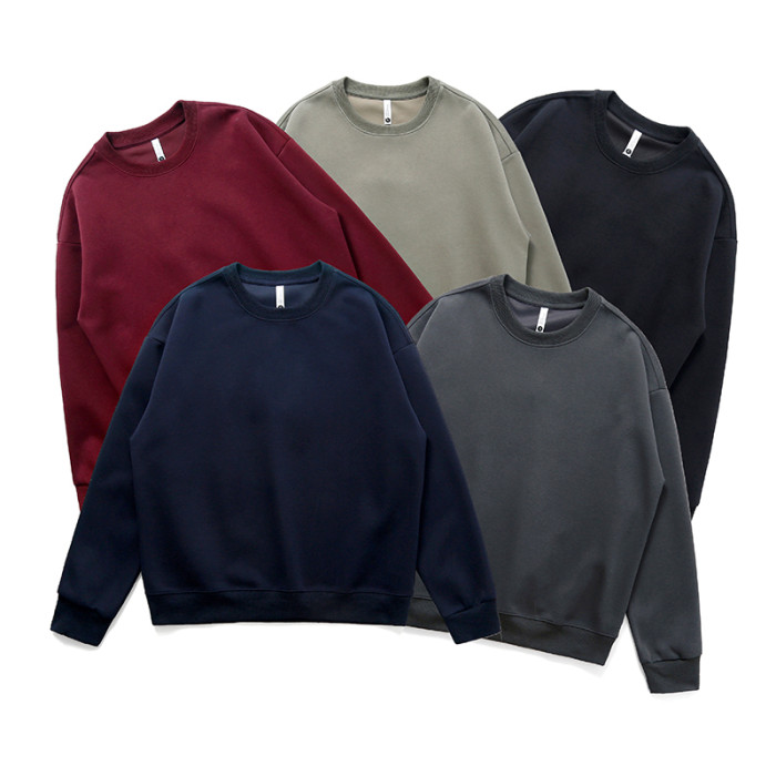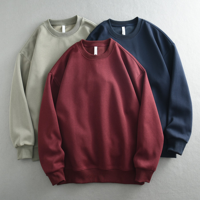 簡約純色設計細膩感百搭圓領衛衣男士春秋款情侶長袖上衣男打底衫