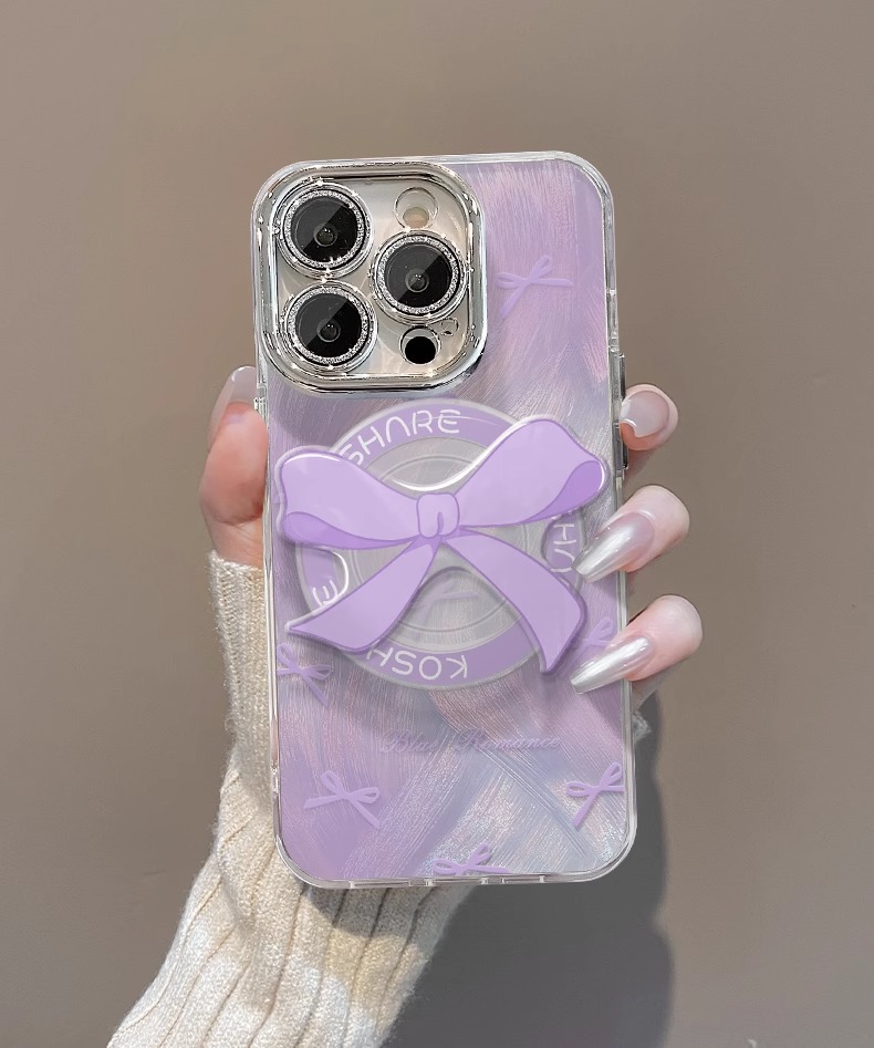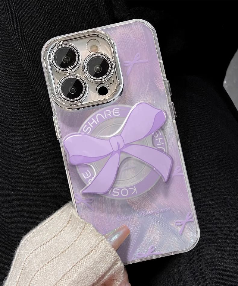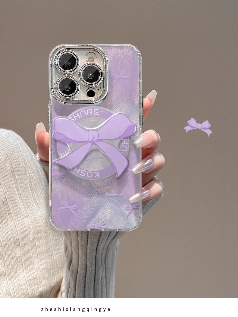 磁吸羽紗-紫色蝴蝶結單殼+磁吸支架