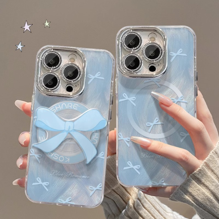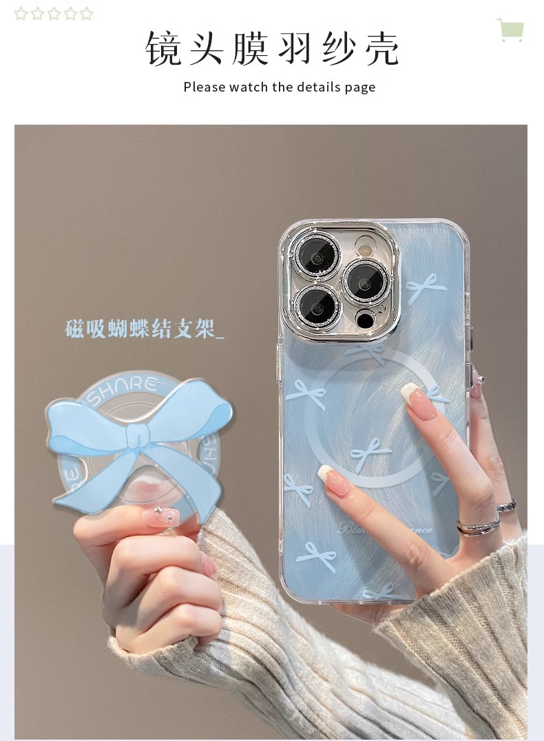 磁吸羽紗-藍色蝴蝶結單殼+磁吸支架