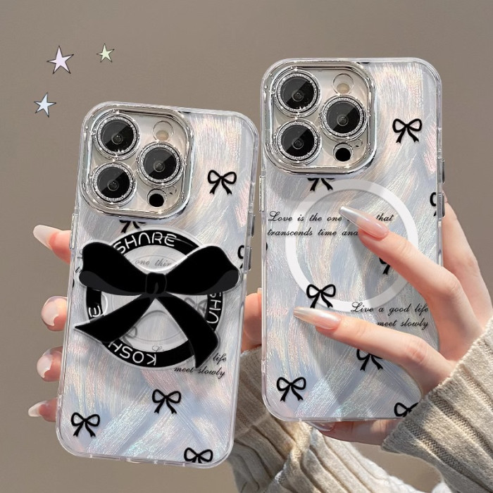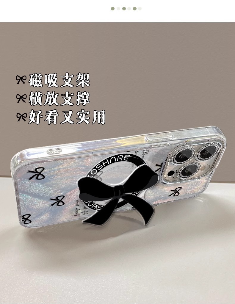 磁吸羽紗-黑蝴蝶結單殼+磁吸支架