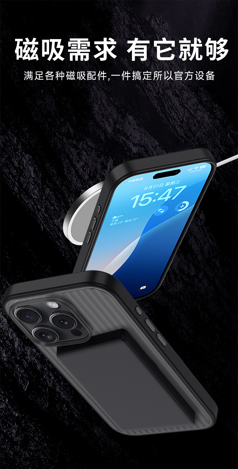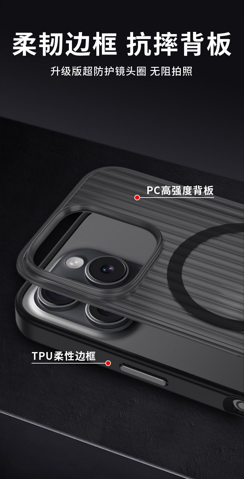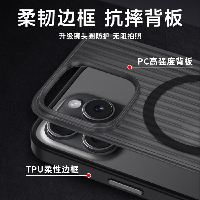 適用蘋果16pro手機殼簡盾磁吸iPhone15promax瓦楞紋軟邊硬背不傷