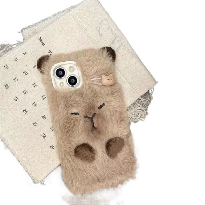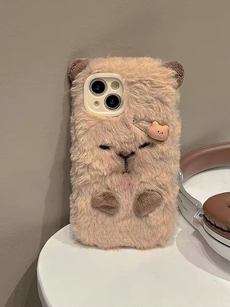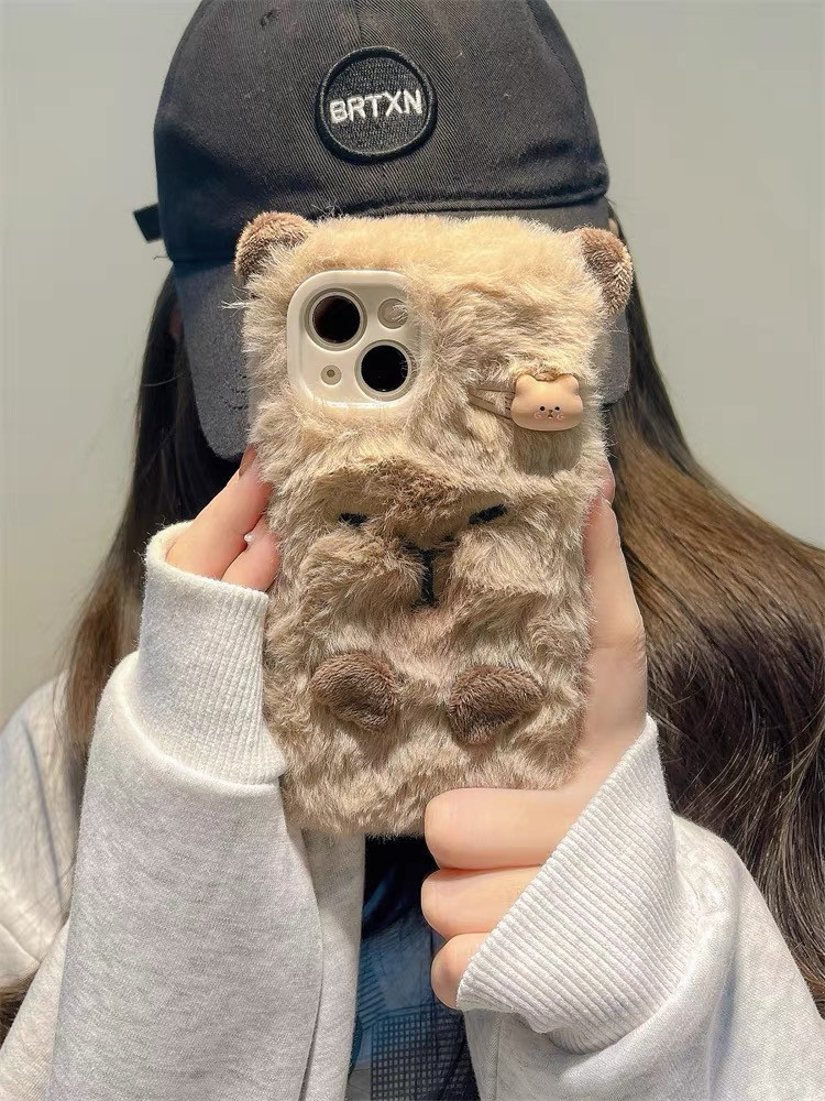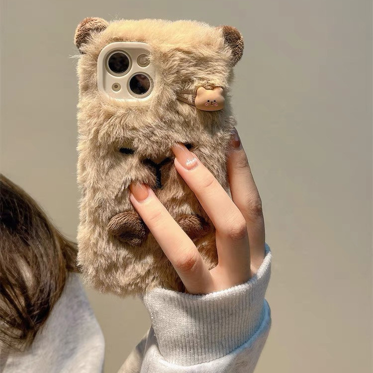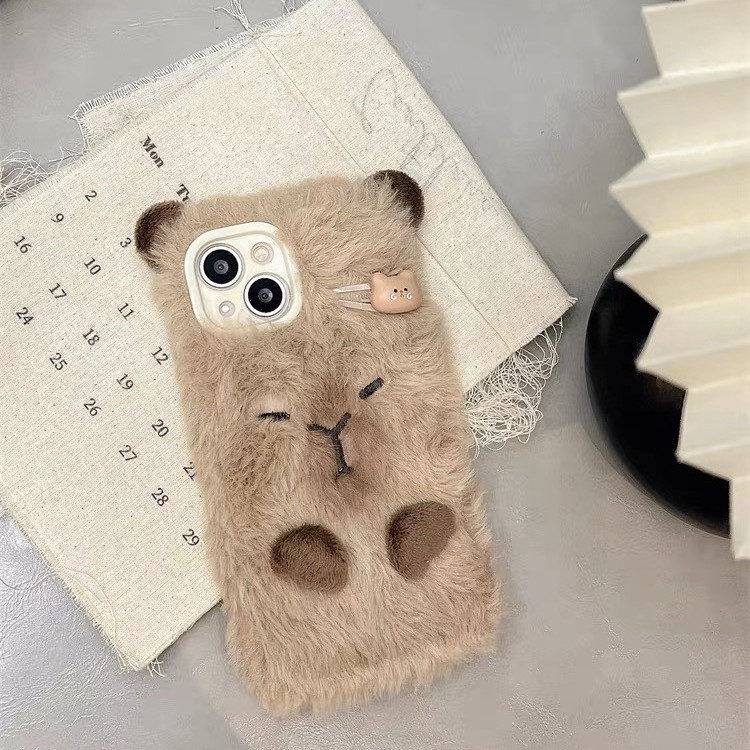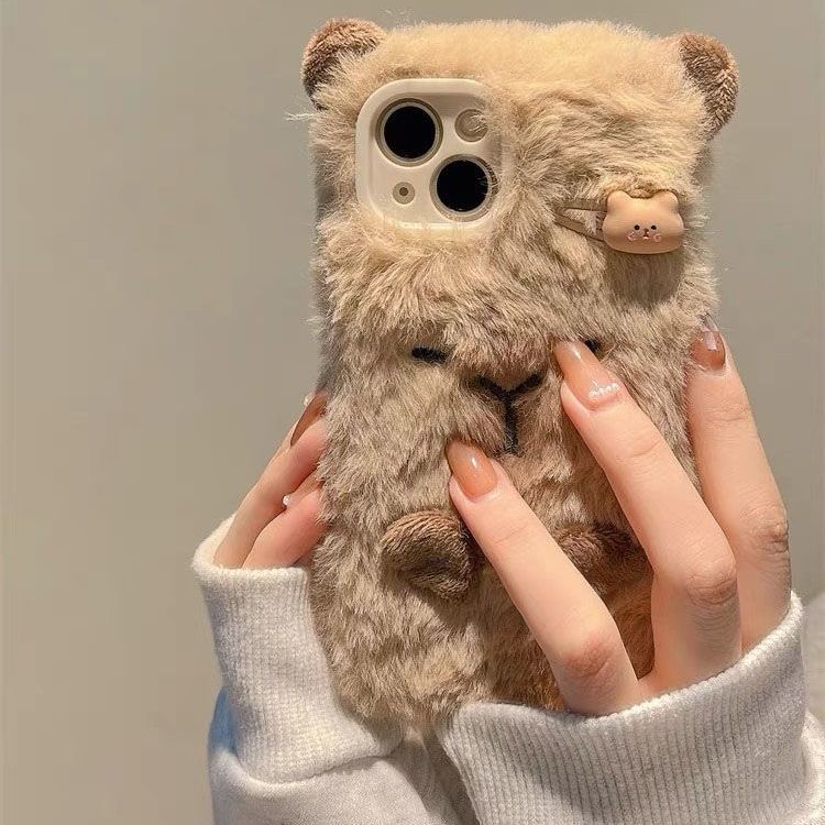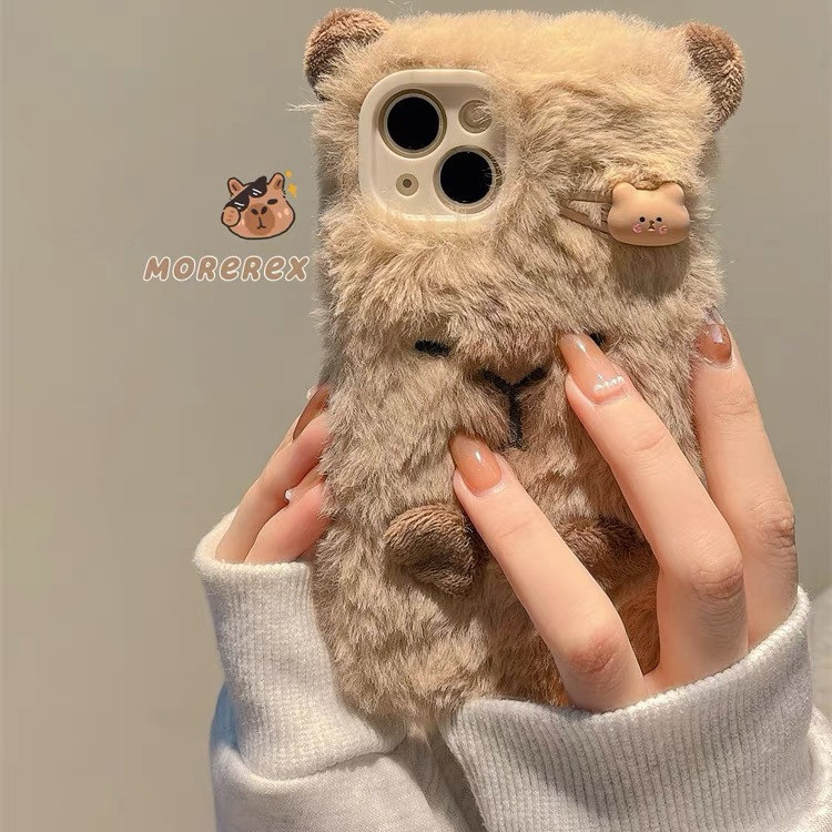 毛絨卡皮巴拉適用蘋果16手機殼iPhone15ProMax可愛14Pro女13軟12