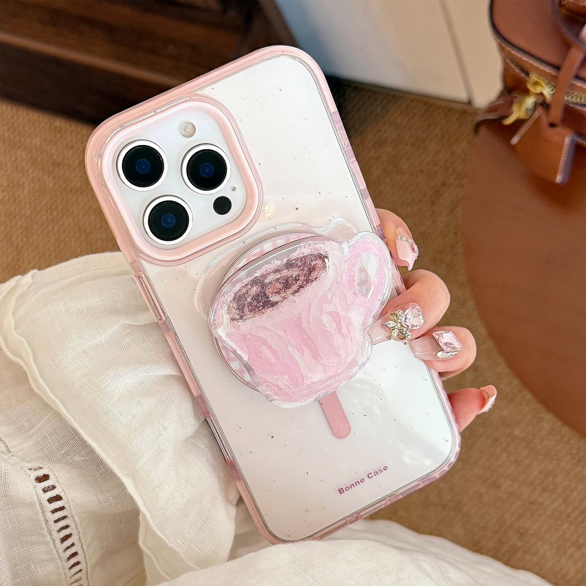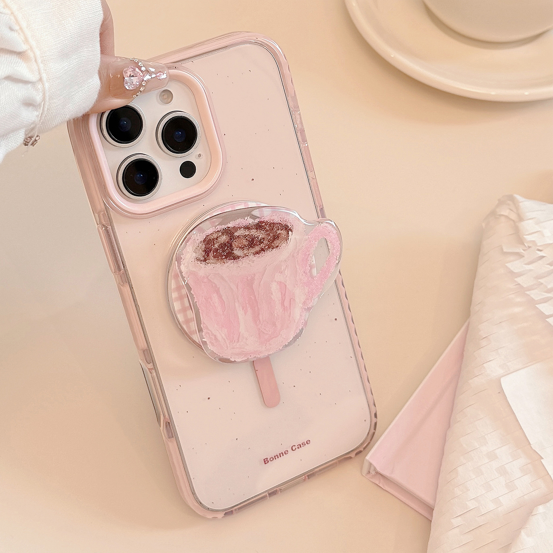 磁吸支架適用蘋果16promax手機殼粉色咖啡杯iPhone15防摔1413
