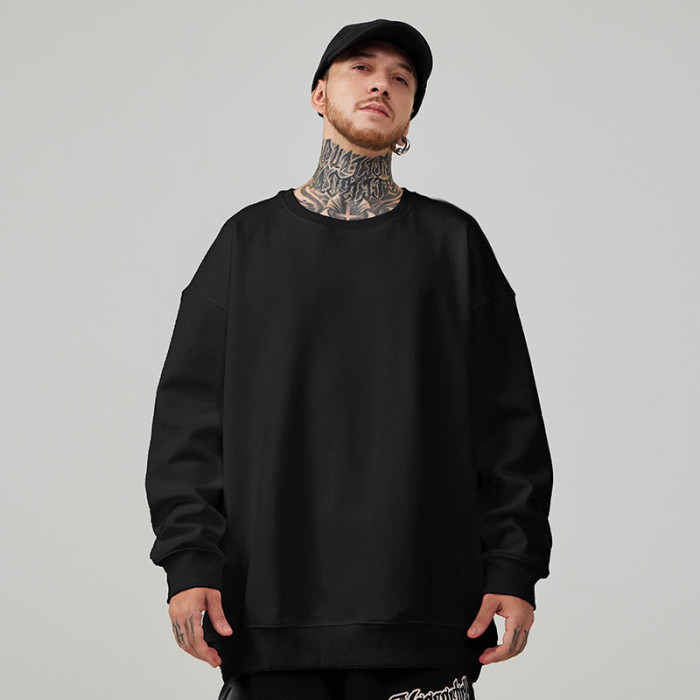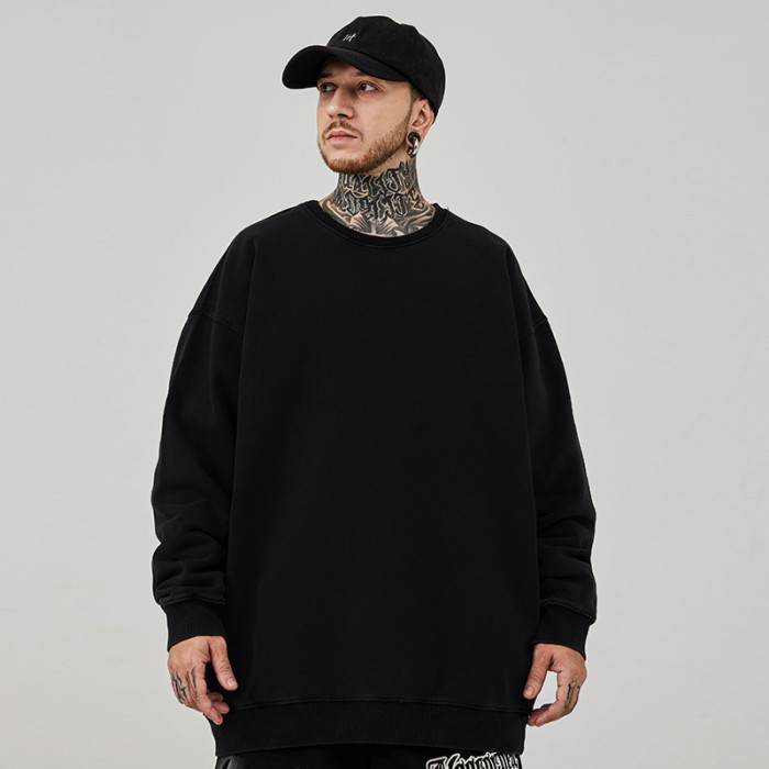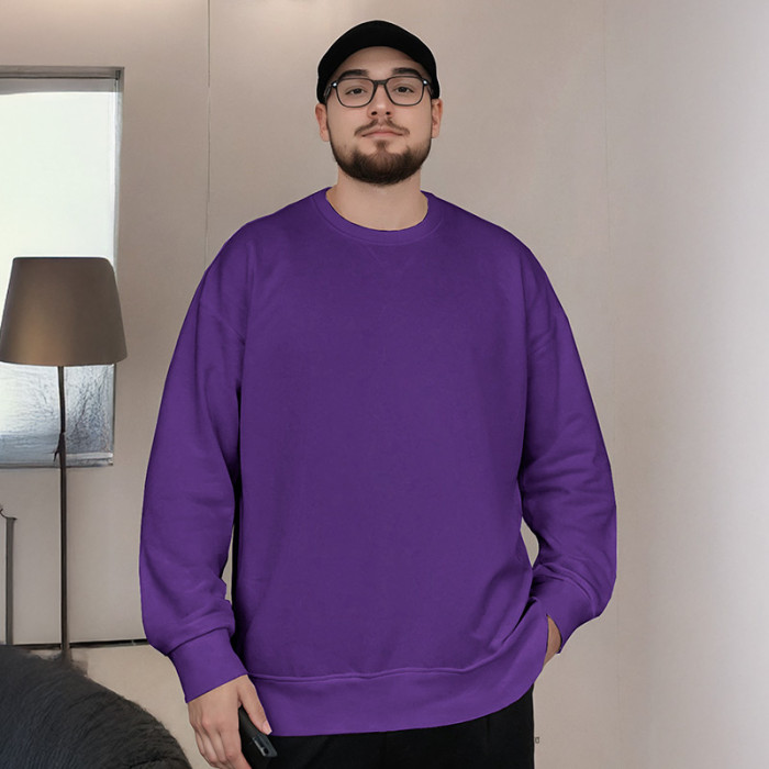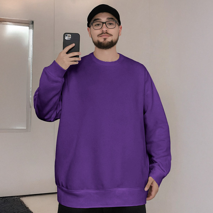 300斤大碼男裝紫色衛衣男打底衫重磅純色圓領純棉無帽加絨秋冬款