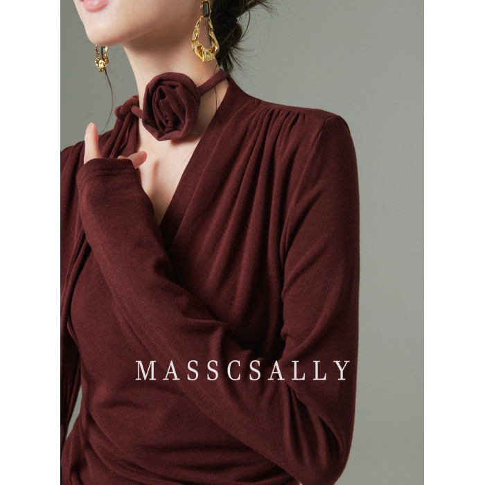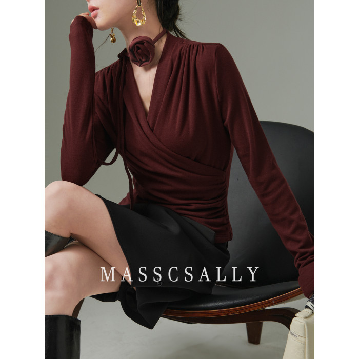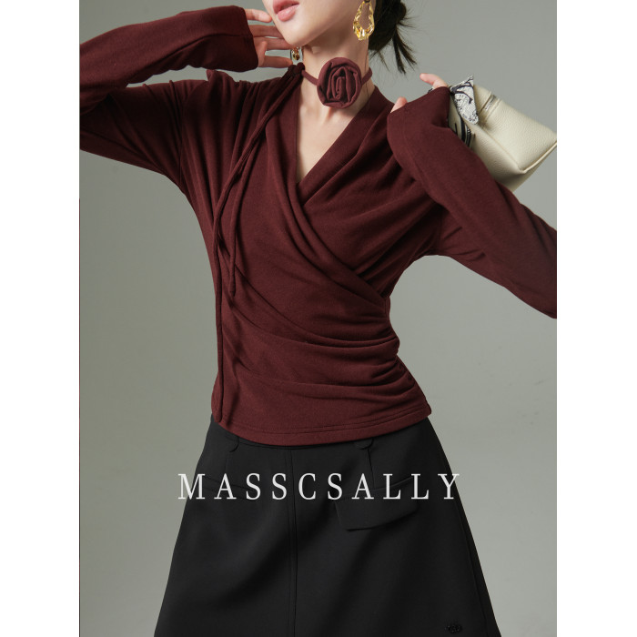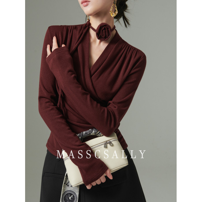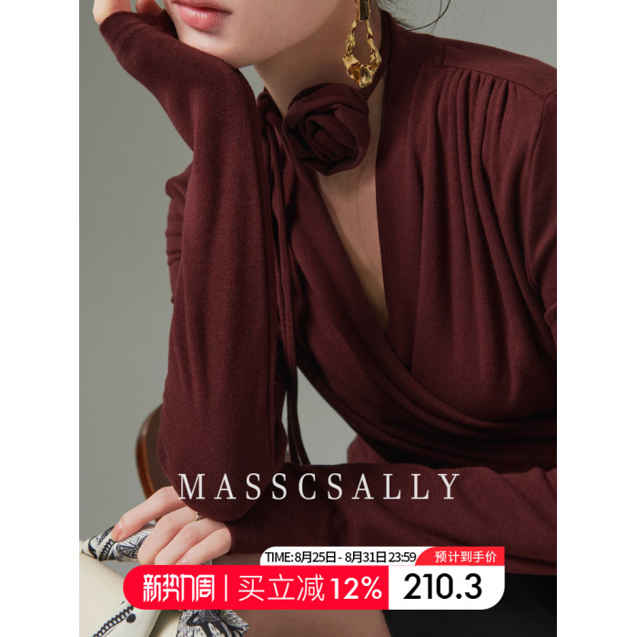 法式設計感針織衫打底衫女2024秋季新款短款氣質毛衣獨特別致上衣