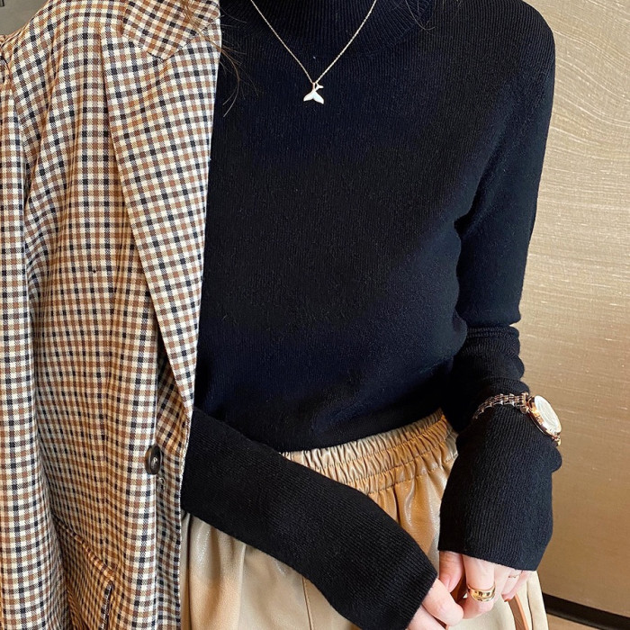 秋冬B備!多色入!巨溫柔巨洋氣の半高領修身百搭針織衫打底衫女