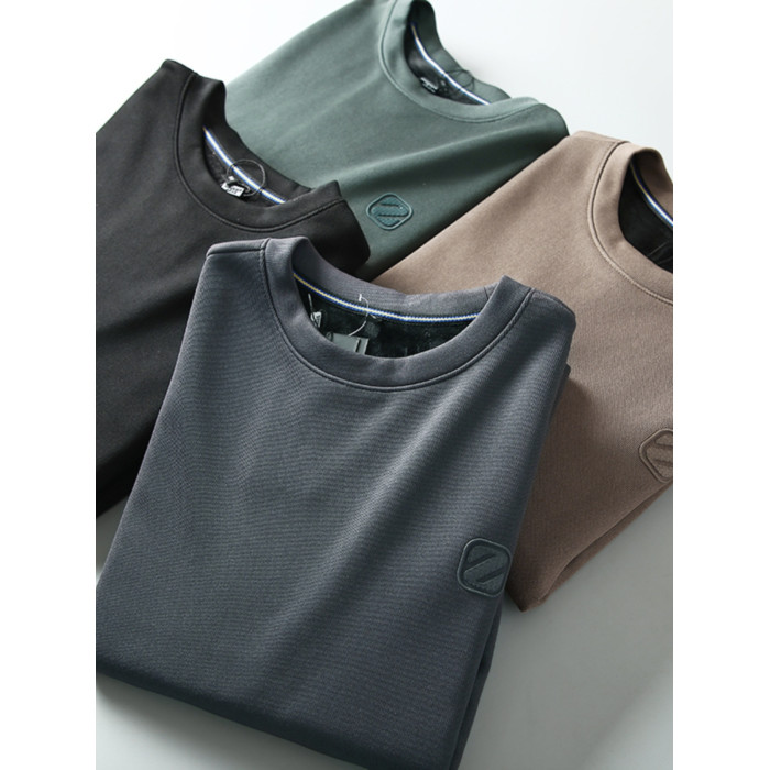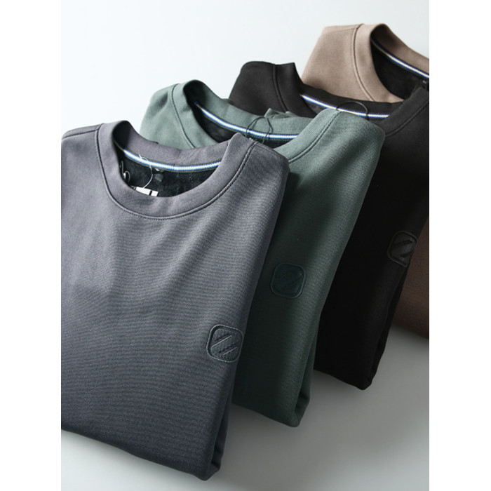 圓領加絨衛衣加厚保暖長袖打底衫秋冬季加絨休閒簡約套頭男裝上衣