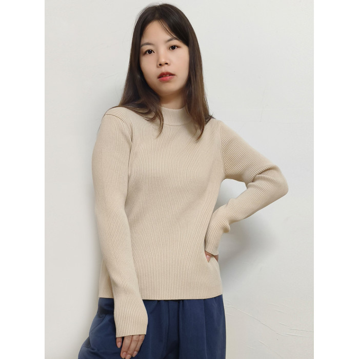 純棉線100%打底衫女半高領毛衣長袖修身內搭秋冬針織衫上衣新款