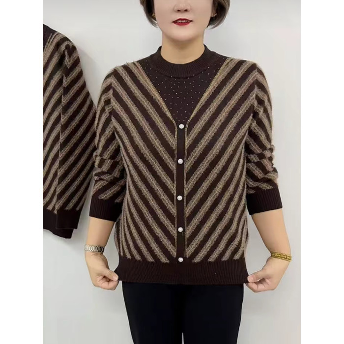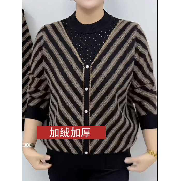 洋氣媽媽裝秋冬新款毛衣女加絨加厚保暖柔軟針織打底衫中老年上衣