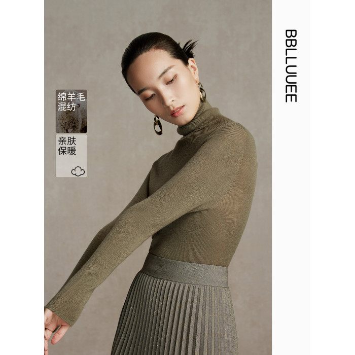 BBLLUUEE粉藍衣櫥時尚百搭雲朵感羊毛衫女2025春秋新款修身打底衫