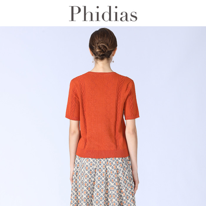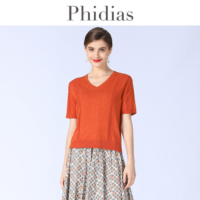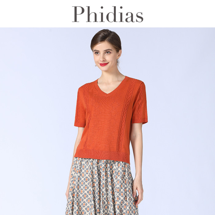 PhidiasV領套頭短袖針織打底衫女2025年春夏新款簡約百搭毛衫上衣