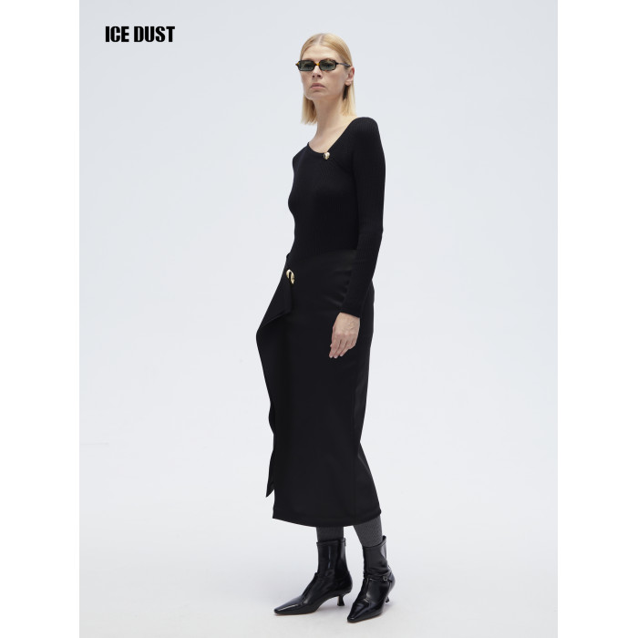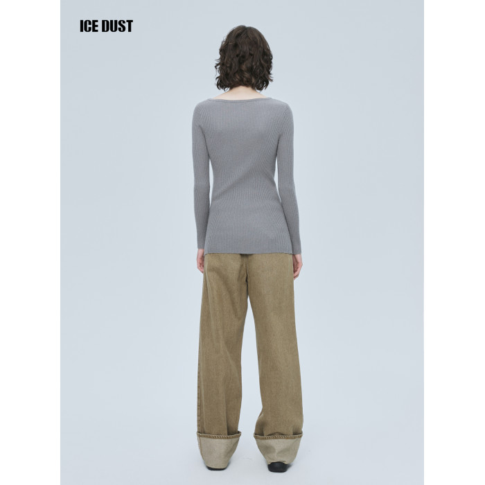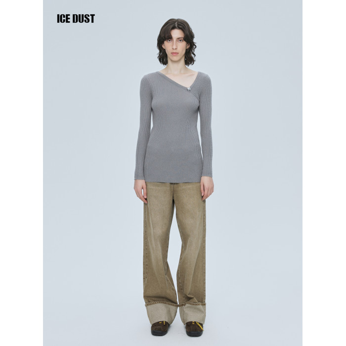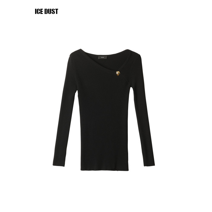 ICEDUST 冬季系列極簡斜領金釦修身長袖內搭針織打底衫上衣女士