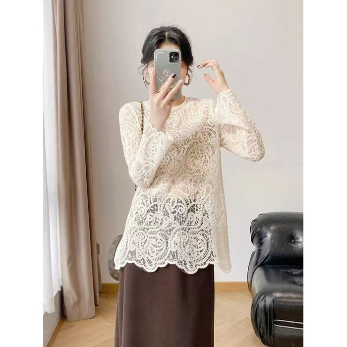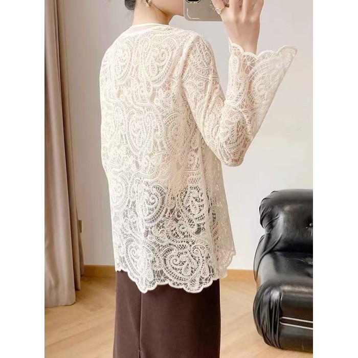 夏季蕾絲鏤空針織衫女寬松顯瘦內搭打底衫上衣氣質百搭洋氣小衫薄