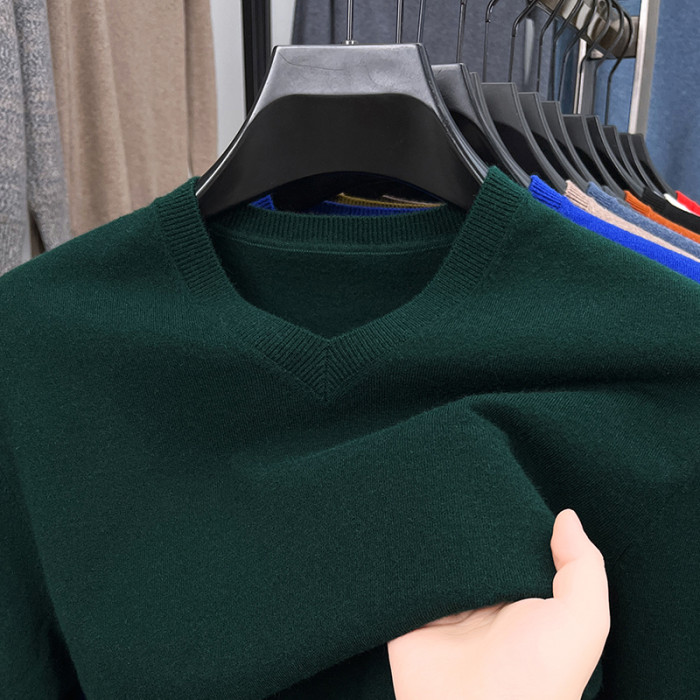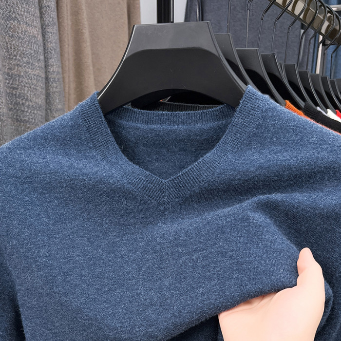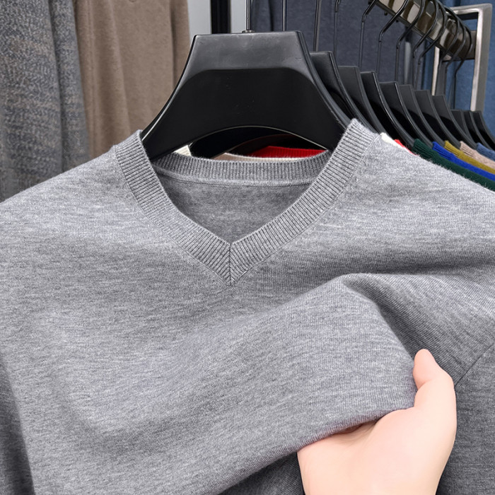 恒源祥薄款羊毛衫男2025春秋季純色休閒毛衣男士V領針織打底衫潮