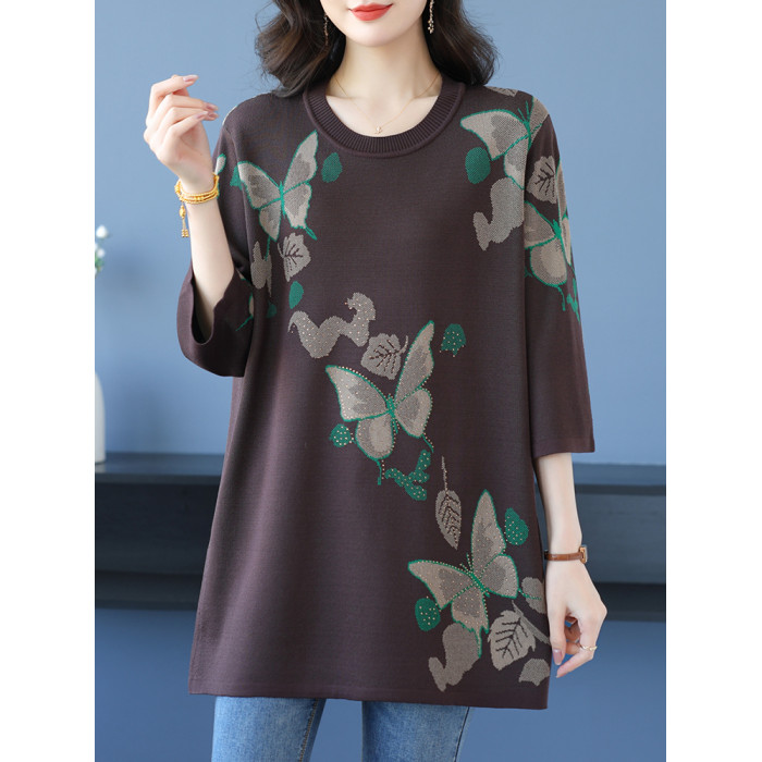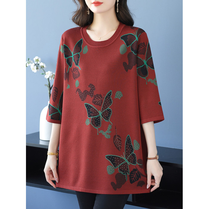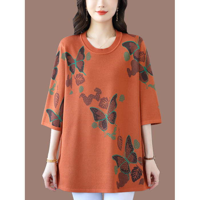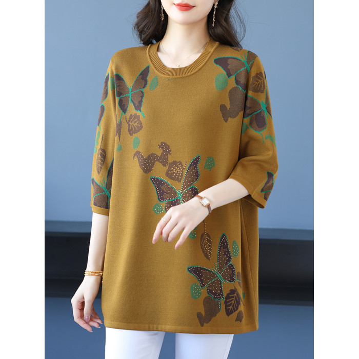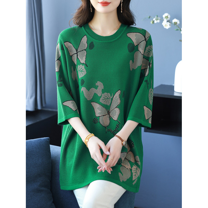 中年媽媽裝針織衫女薄款夏冰絲寬松大碼洋氣遮肉顯瘦七分袖打底衫