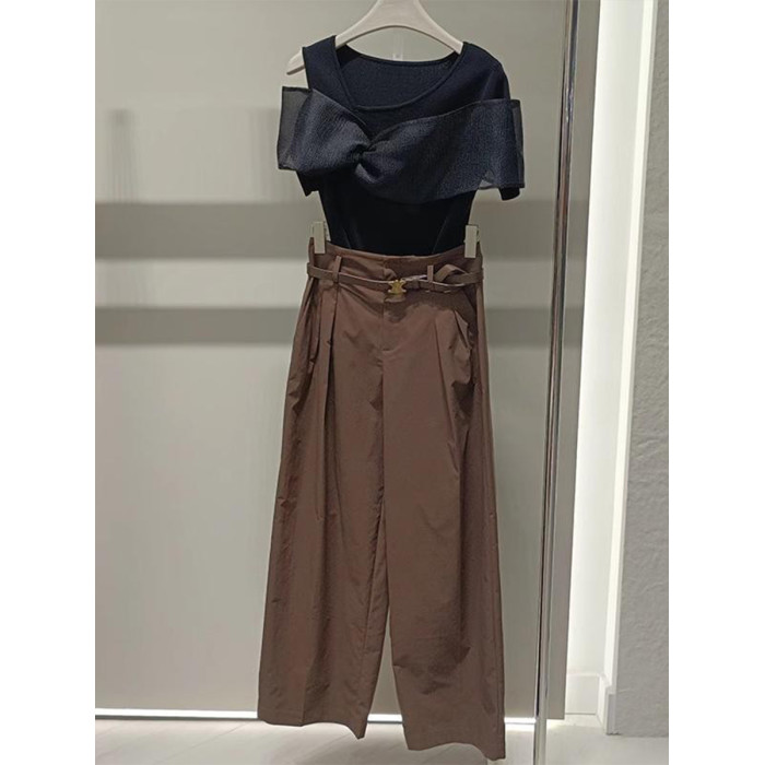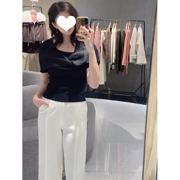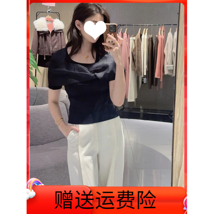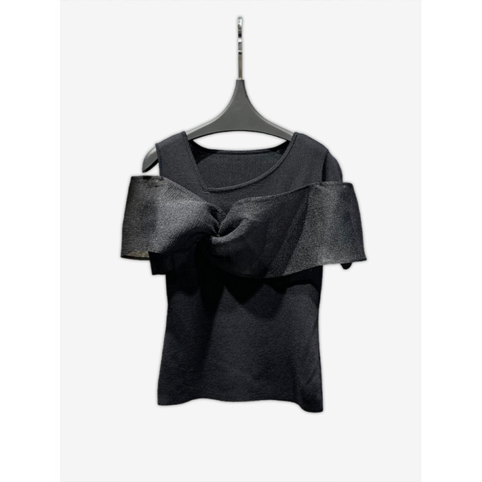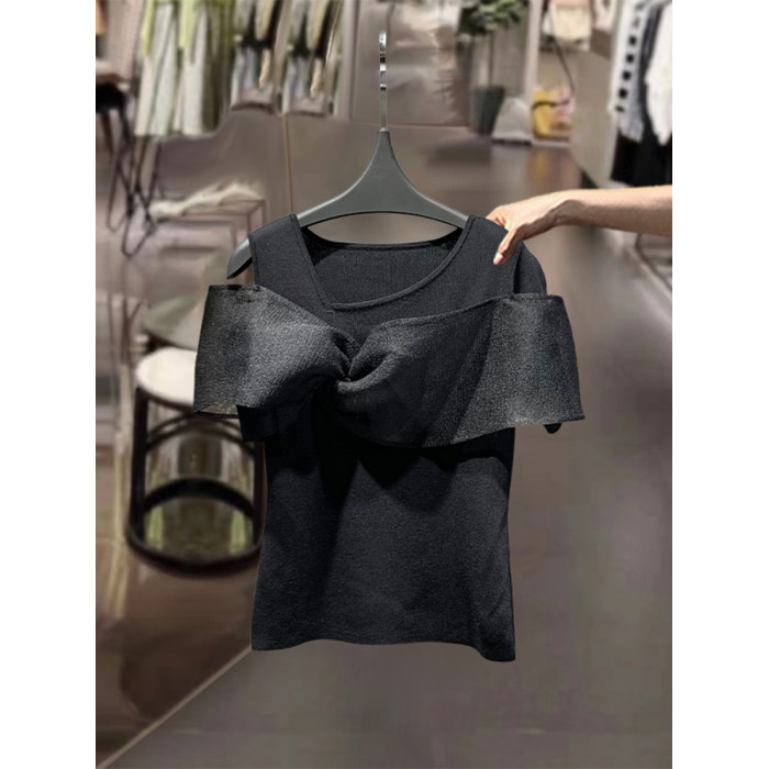 繁雲調黑色蝴蝶結拼接針織衫女2025夏新款修身顯瘦氣質打底衫上衣