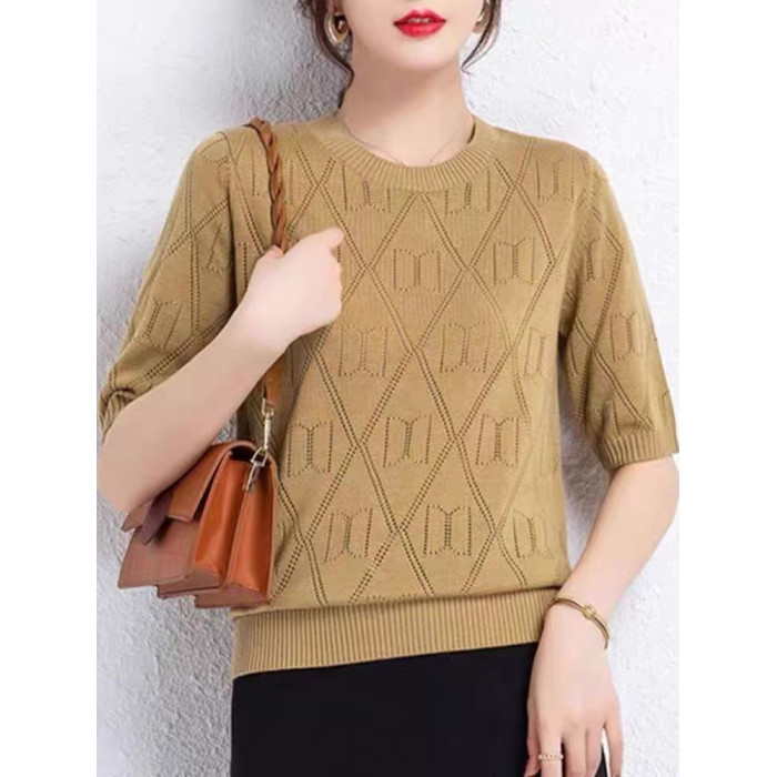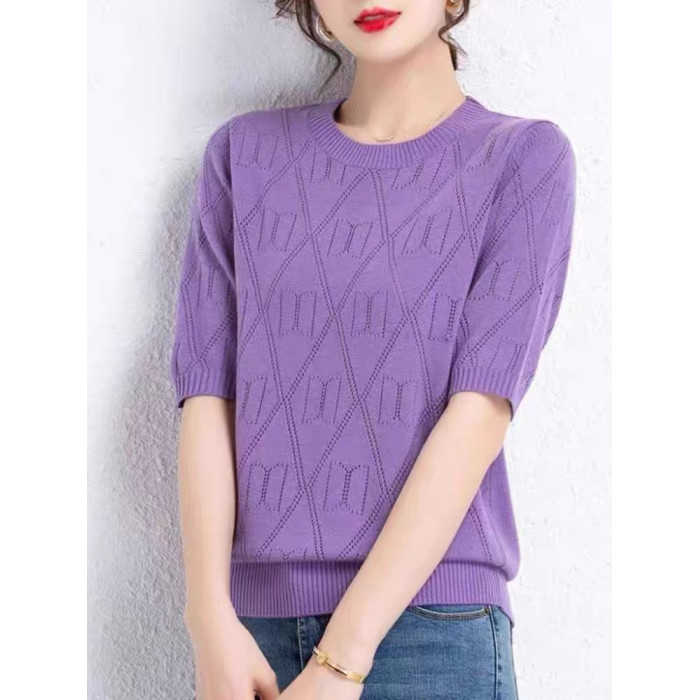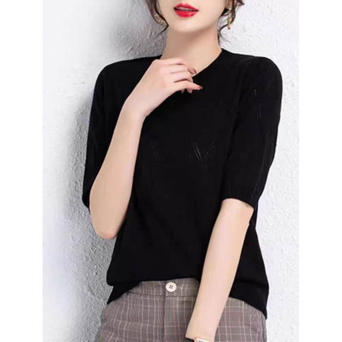 夏裝薄款內搭圓領純色棉線針織衫女韓版寬松短款短袖打底衫上衣薄