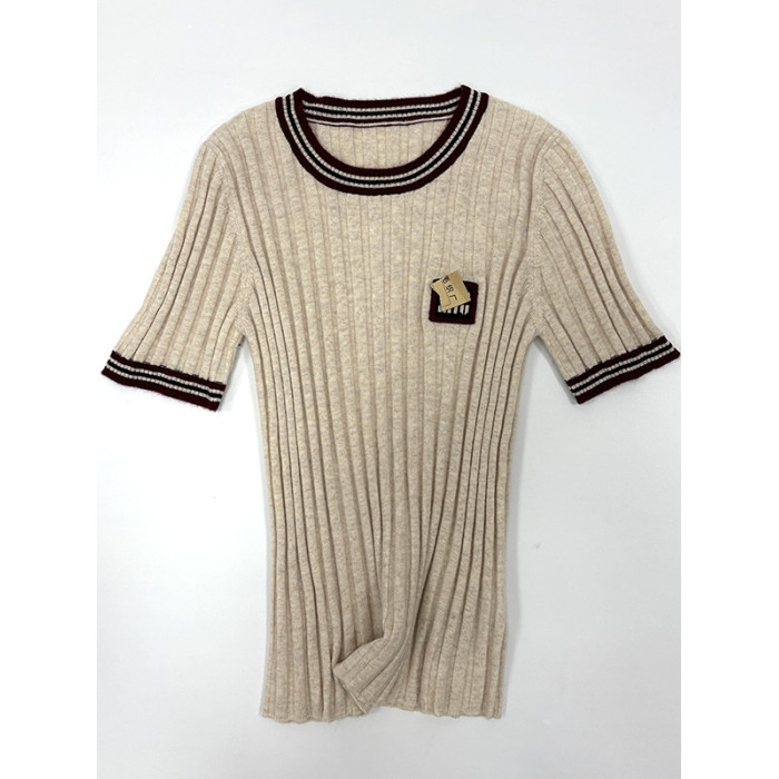 100%羊毛原單高級訂單款夏女裝超柔軟細膩貼身打底衫毛衣短袖套頭