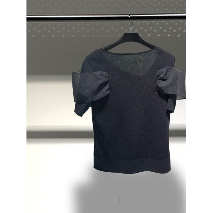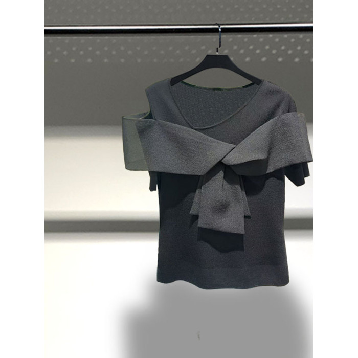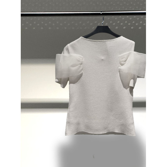 白色蝴蝶結拼接針織衫女三彩虹2025夏顯瘦打底衫上衣S25216410M20