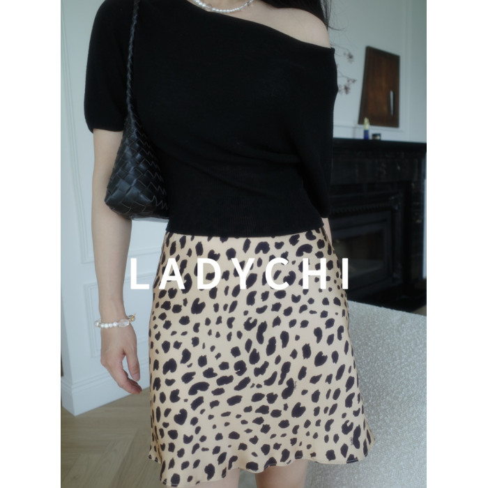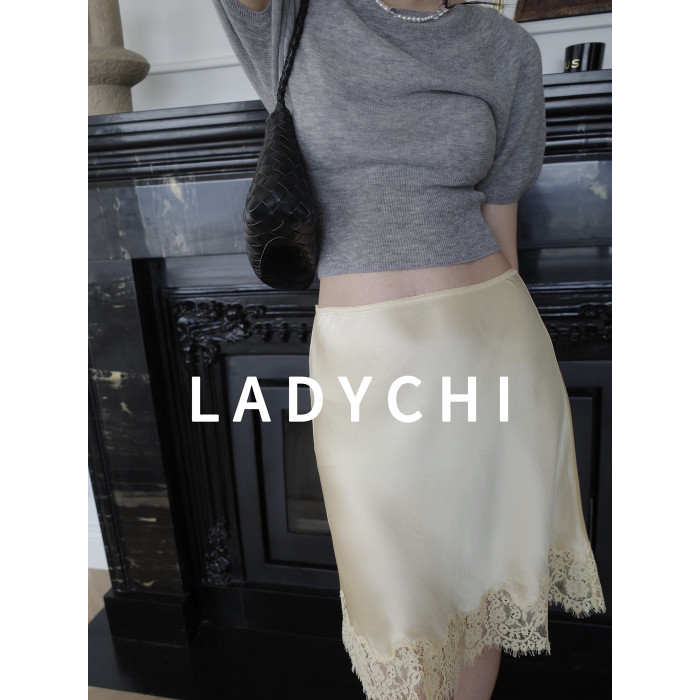 LadyChi 敭子紗100羊毛薄款透氣無縫一字領針織短袖短款打底衫夏