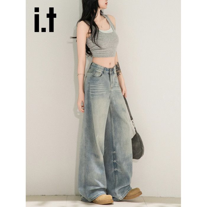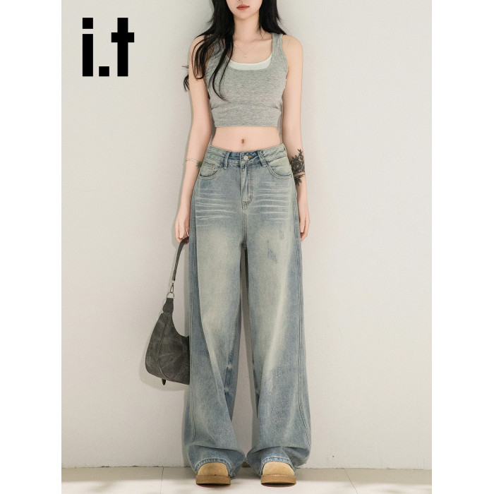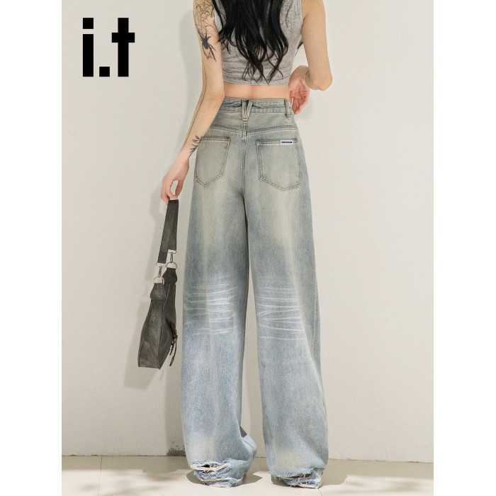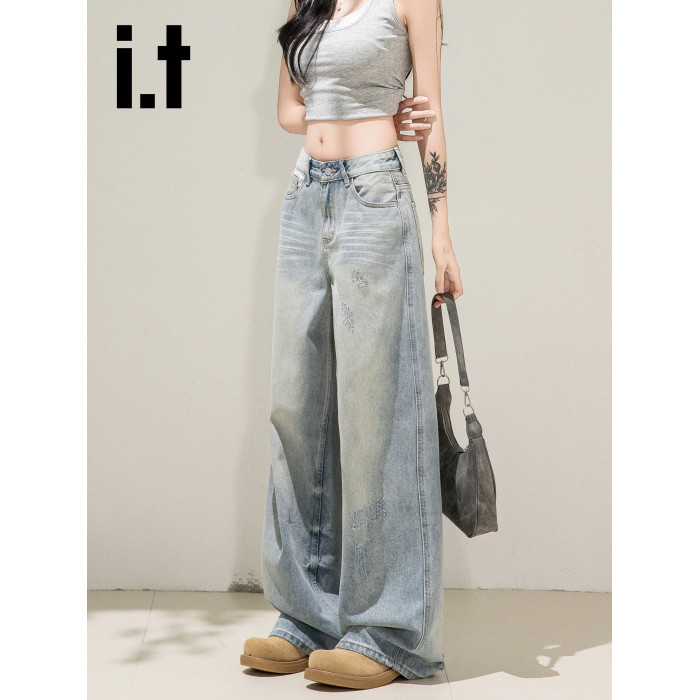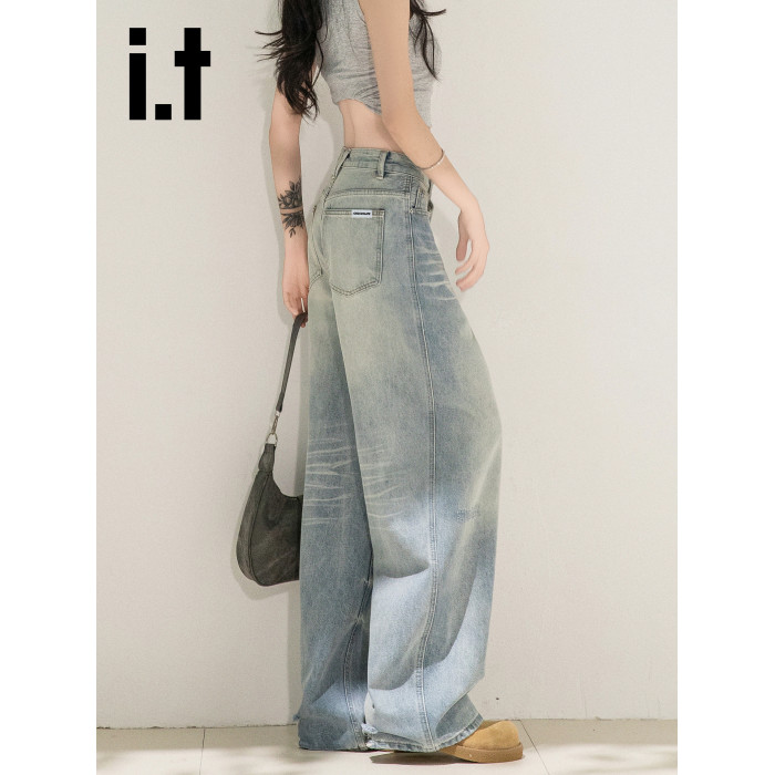 it:CHOCOOLATE淺色濶腿女牛仔褲美式復古直筒新款長褲子高街褲子