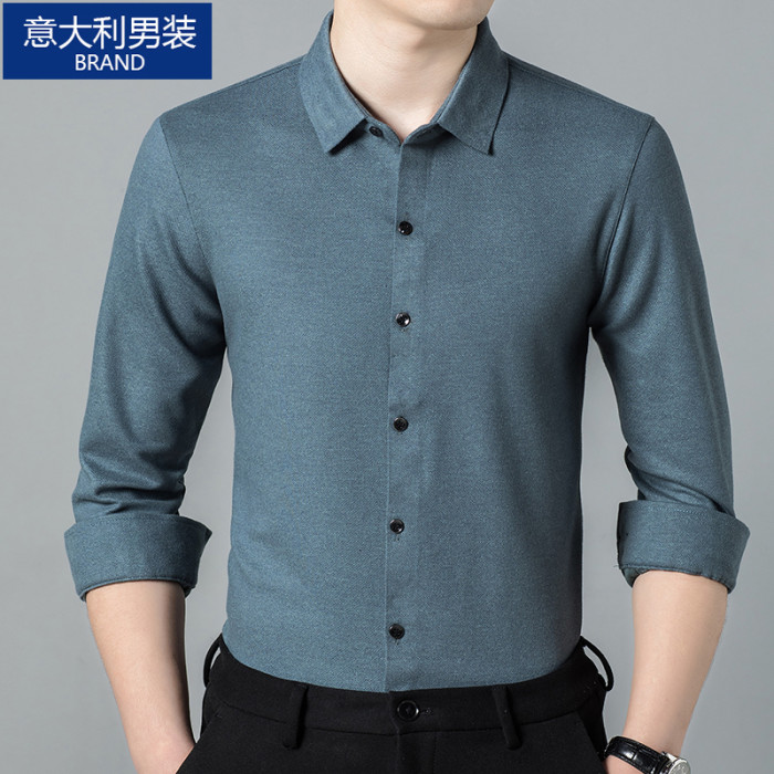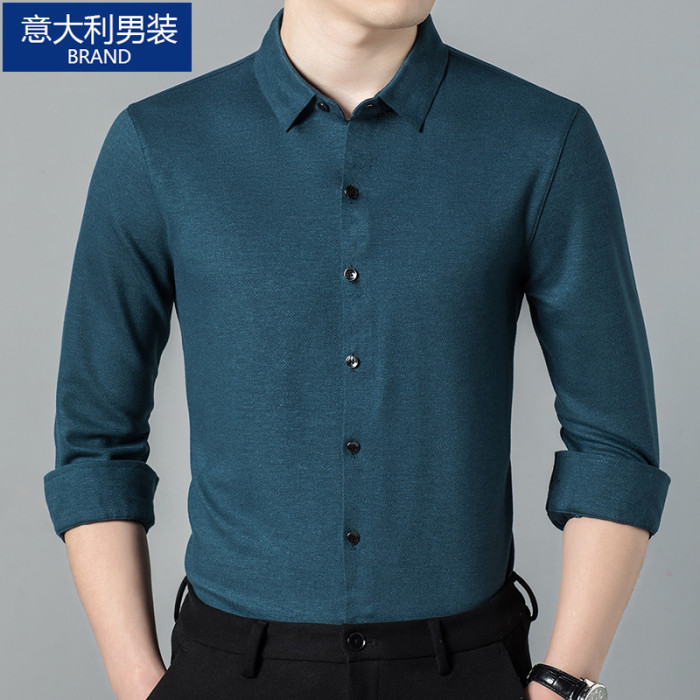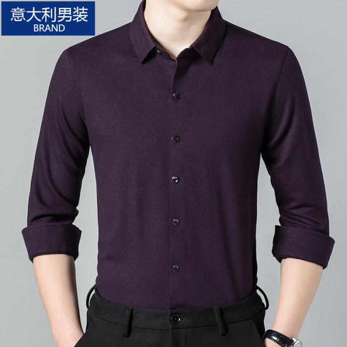 意大利品牌純色羊絨襯衫男春秋季新款抗皺抗磨打底衫中老年人長袖
