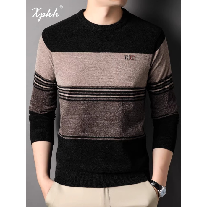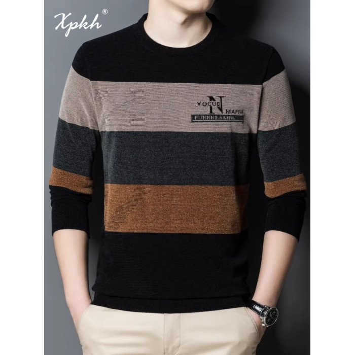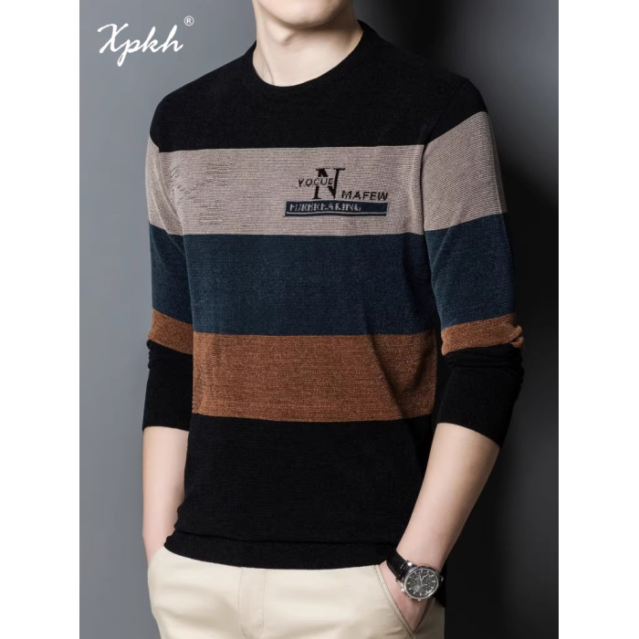 XPKH針織打底衫圓領薄款毛衣2025新款春秋季男純色百搭長袖針織衫