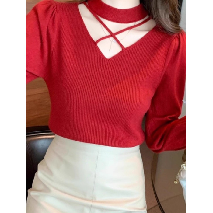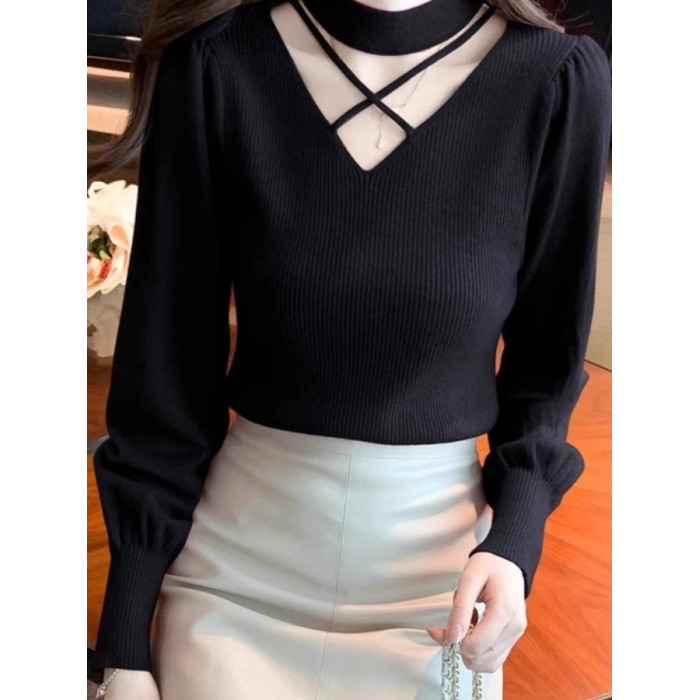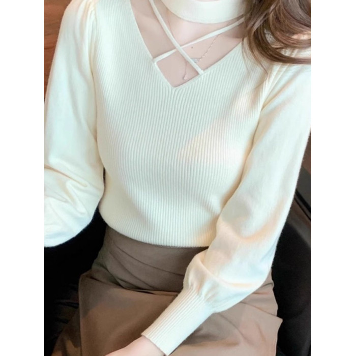 半高領打底衫女秋冬內搭韓版時尚洋氣鏤空設計感修身毛衣針織上衣