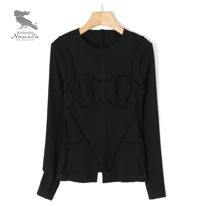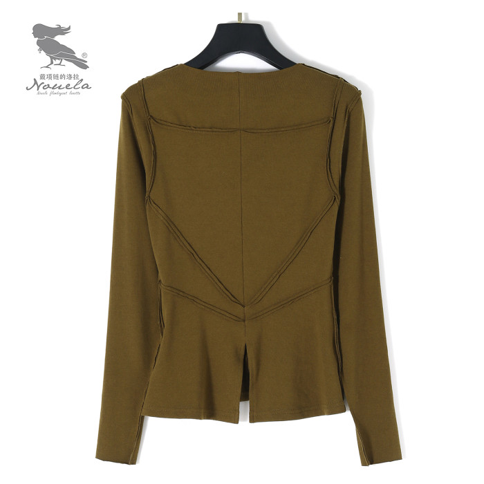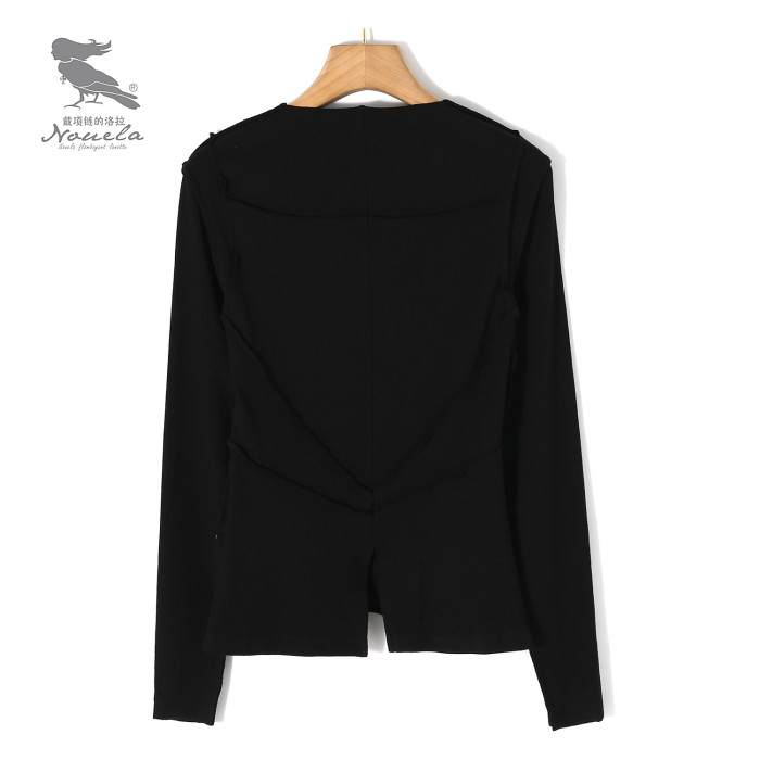 【安晴粉絲專享】洛拉自製設計師款小衆氣質收腰打底衫T1119