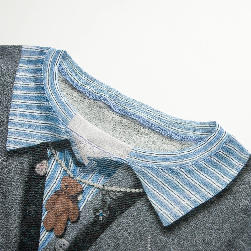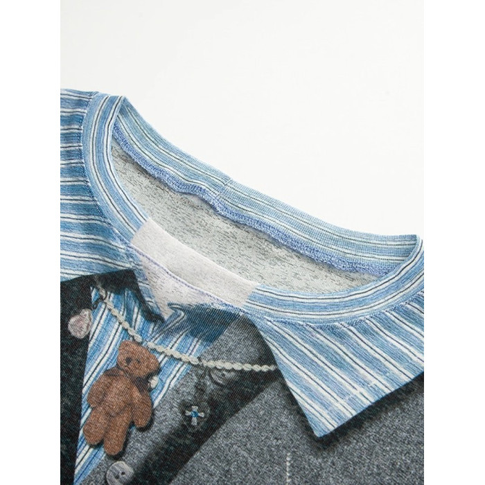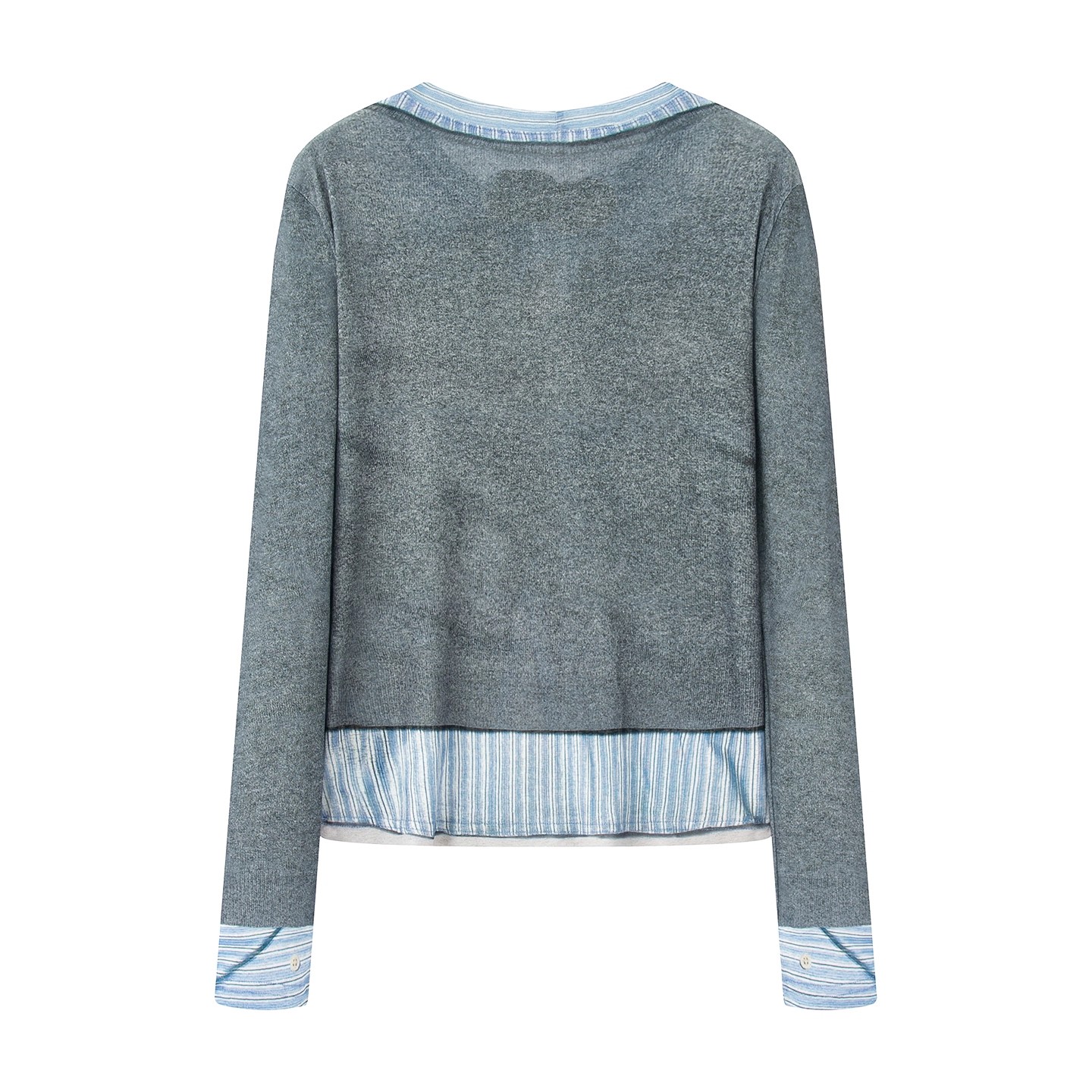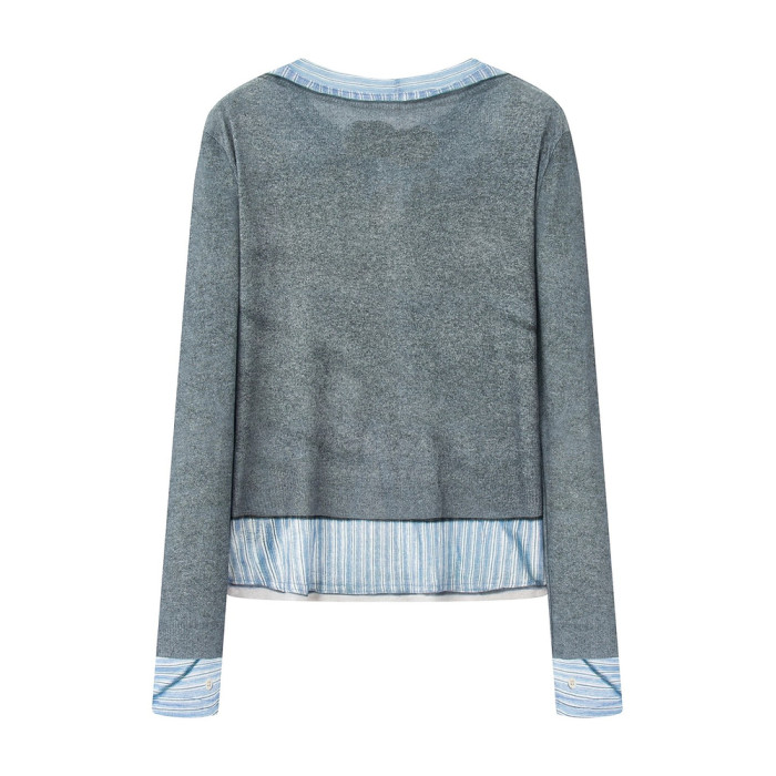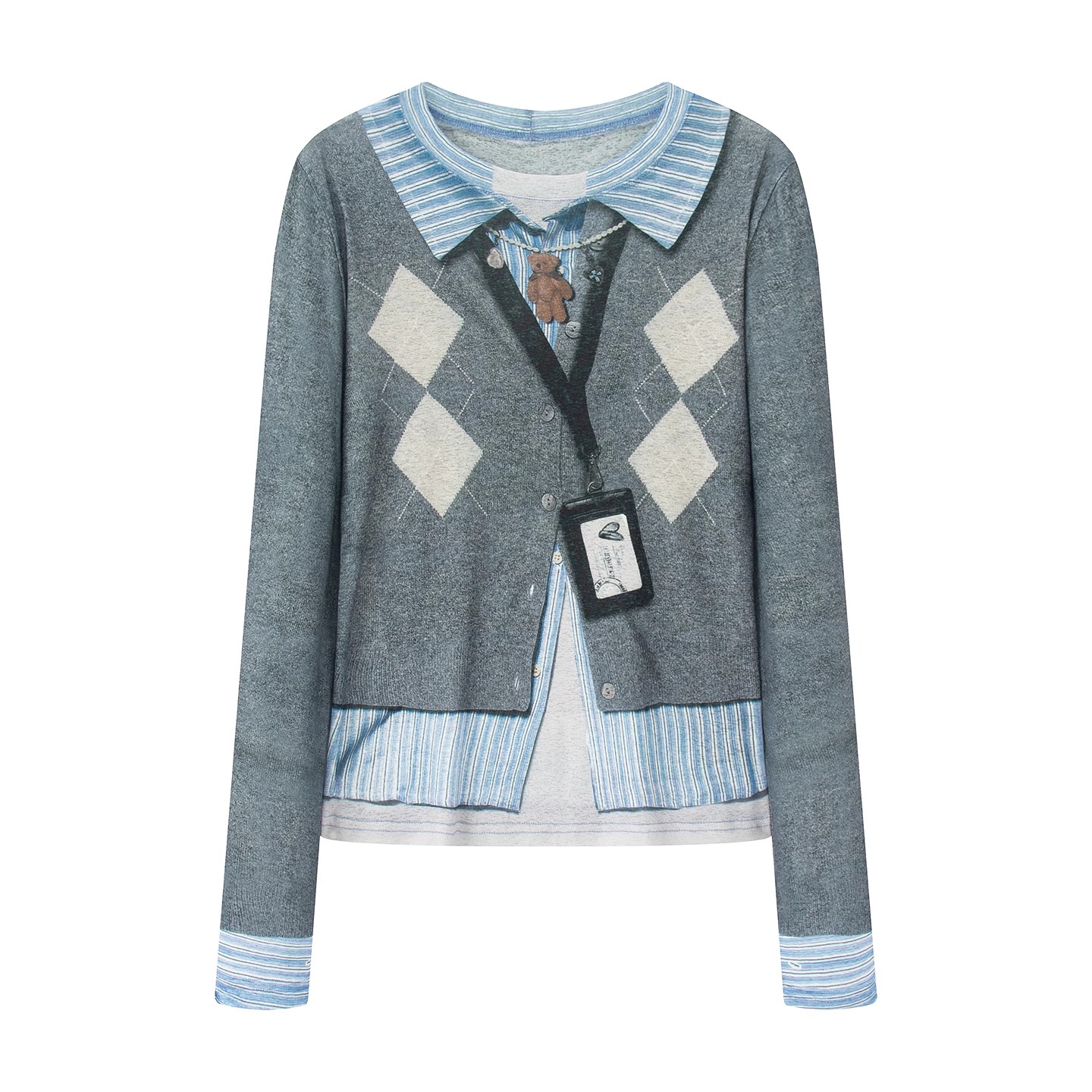 2025秋季新款時尚甜酷百搭菱格印花假兩件圓領打底衫女2530Z13724