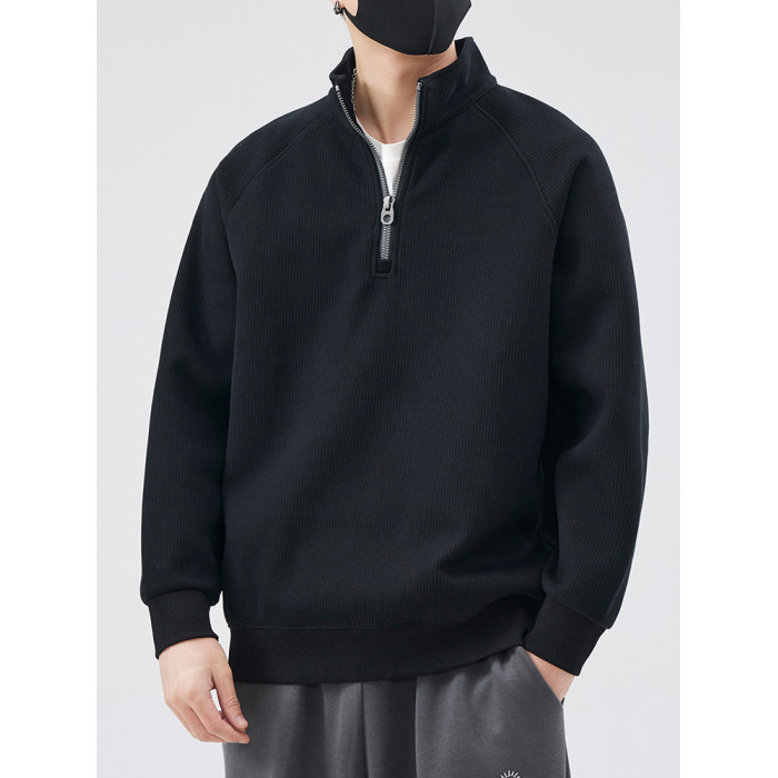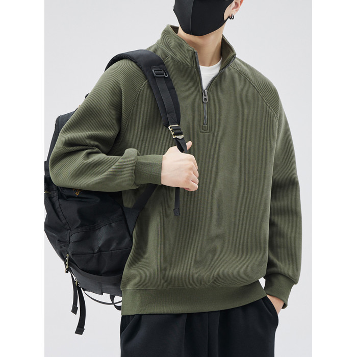 gBUbg 半拉鍊衛衣男款2025新款春秋季寬松潮牌立領加絨打底衫上衣