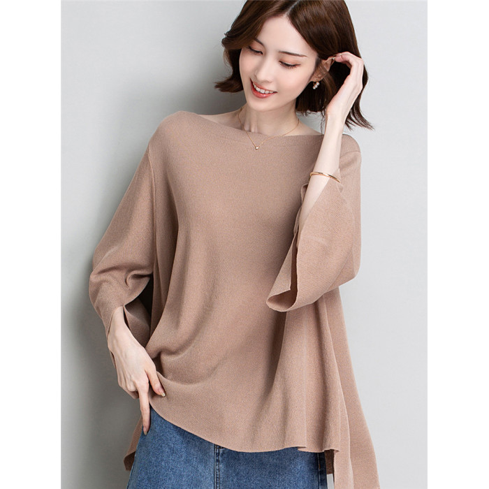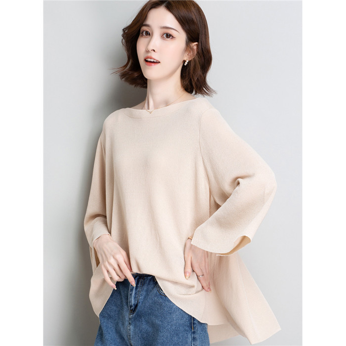 不規則漂亮打底衫女短款大碼慵懶針織上衣2025春秋款毛衣薄款外穿