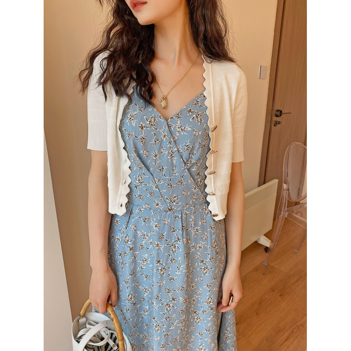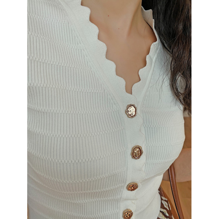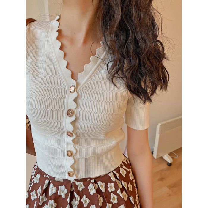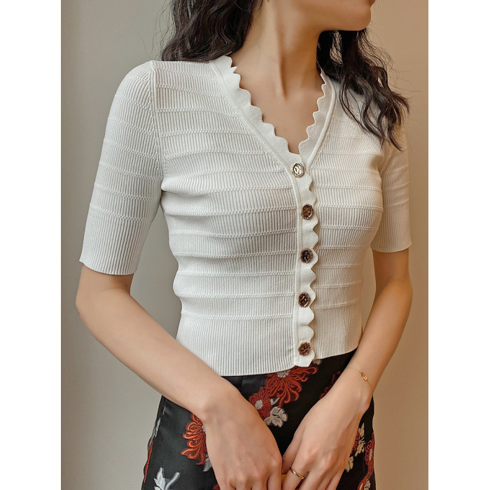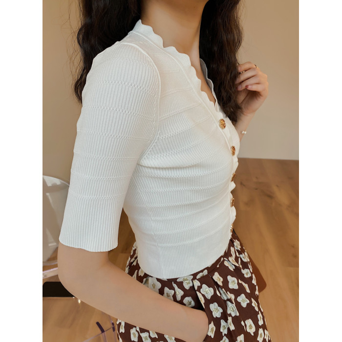 Jophond Lou春夏高彈短款七分袖修身冰絲針織開衫 內搭女 打底衫