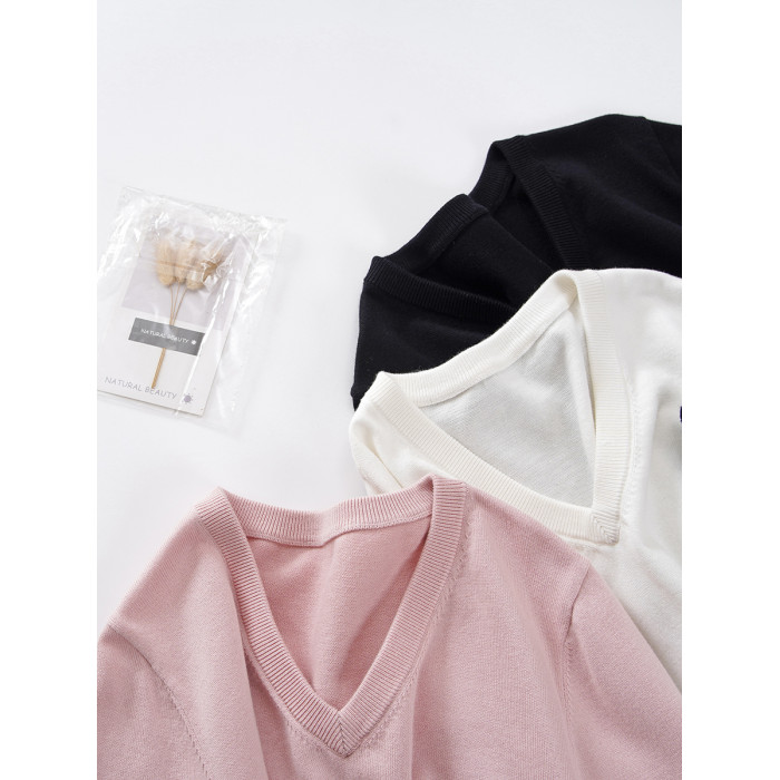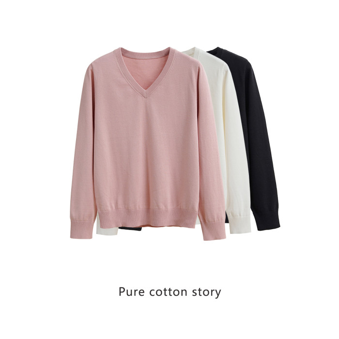 櫃貨!100%長絨棉 棉中貴族v領毛衣打底衫女士套頭針織衫上衣薄款