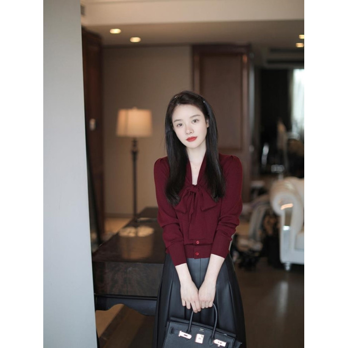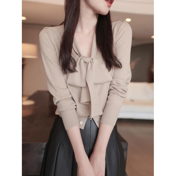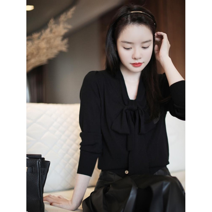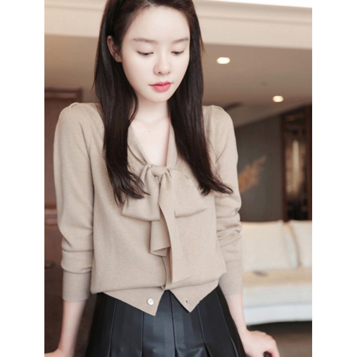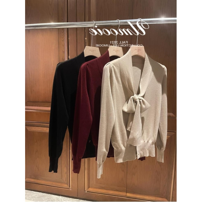 DORACTR女裝高顔值 精緻三色飄帶襯衫款羊毛針織衫打底衫春季新款