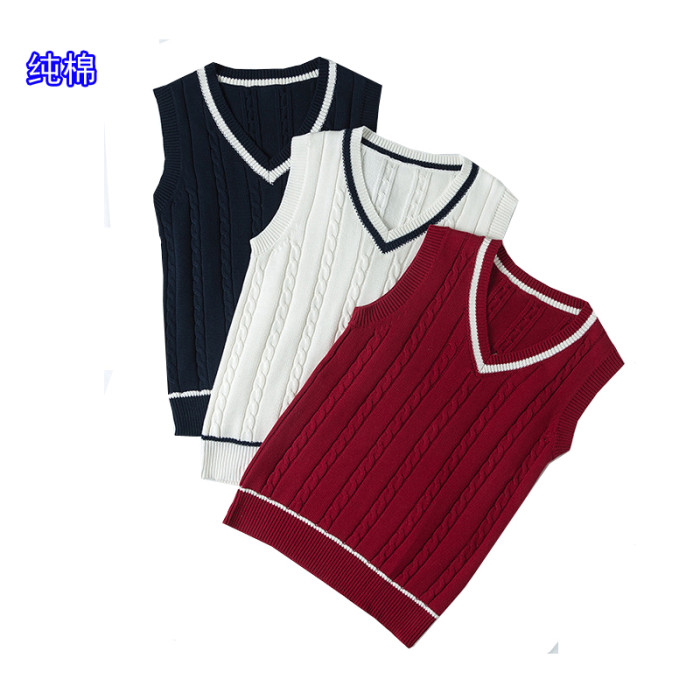 純棉背心女V領無袖馬甲麻花全棉寬松大碼打底衫毛衣JK製服針織衫