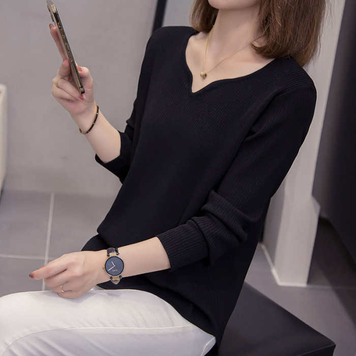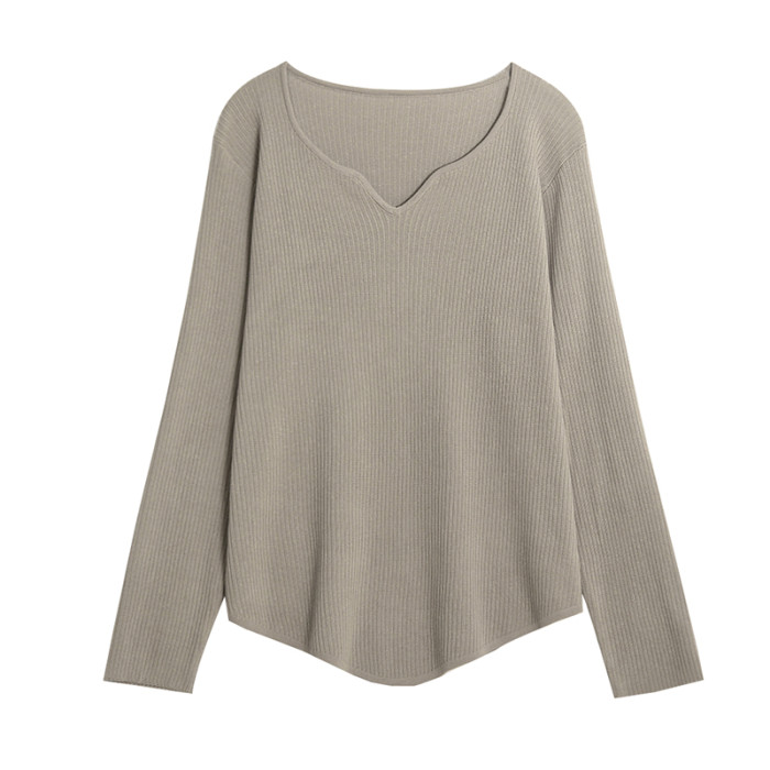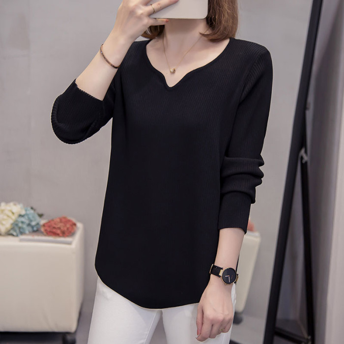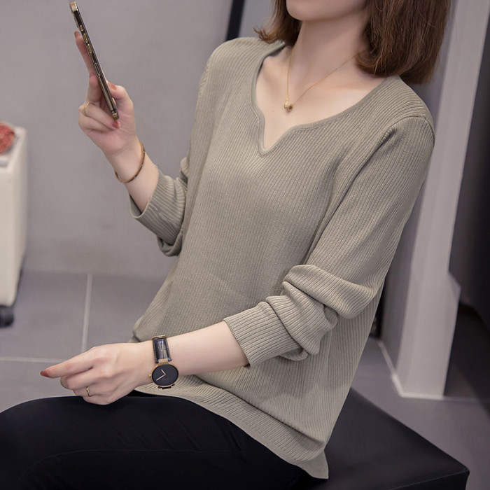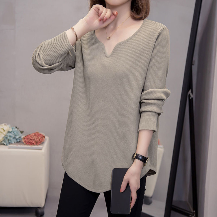 胖mm遮肚顯瘦v領長袖針織打底衫女秋冬新款大碼減齡內搭女士毛衣