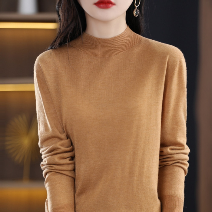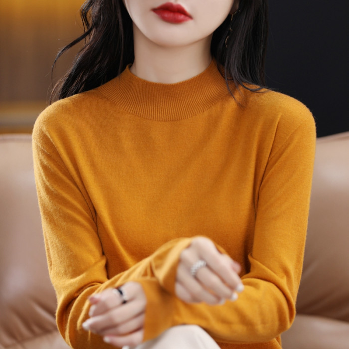 精紡純羊毛衫女洋氣半高領針織衫春秋新款薄毛衣長袖短款打底衫