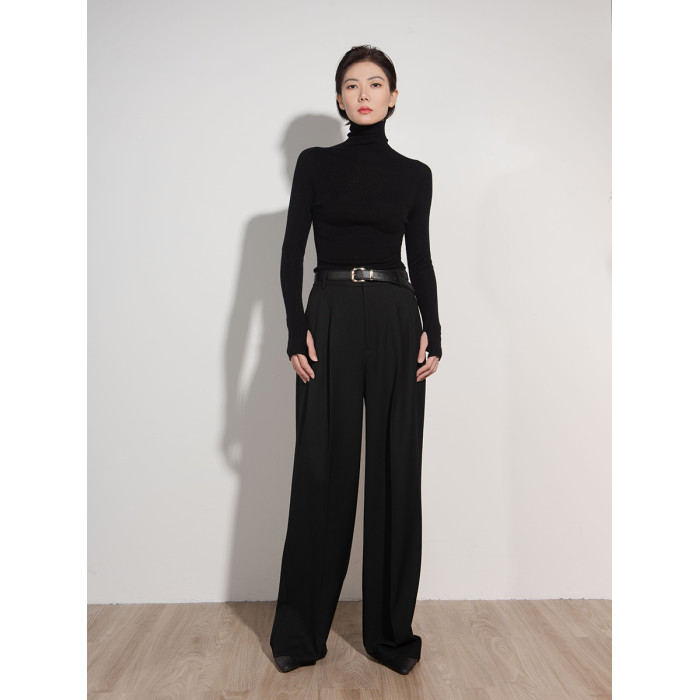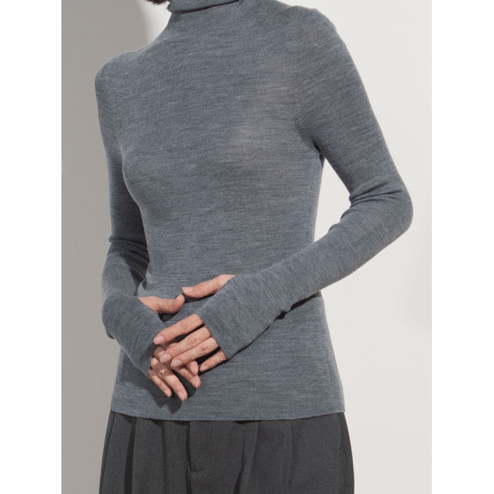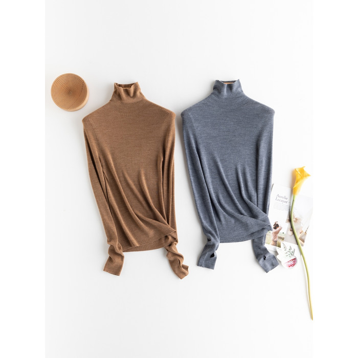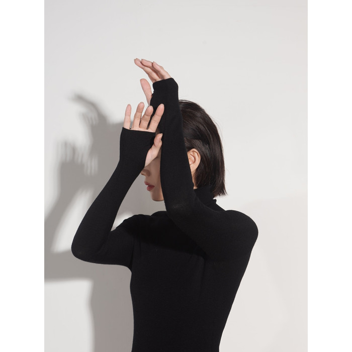 VIA可機洗48支美麗諾澳毛延伸領手指套無縫一體全羊毛打底衫多色