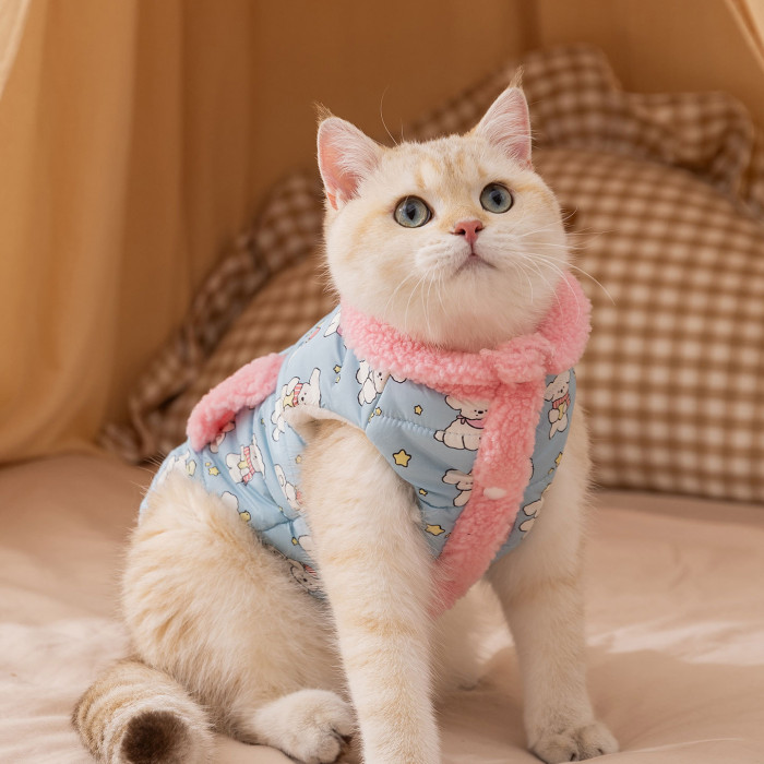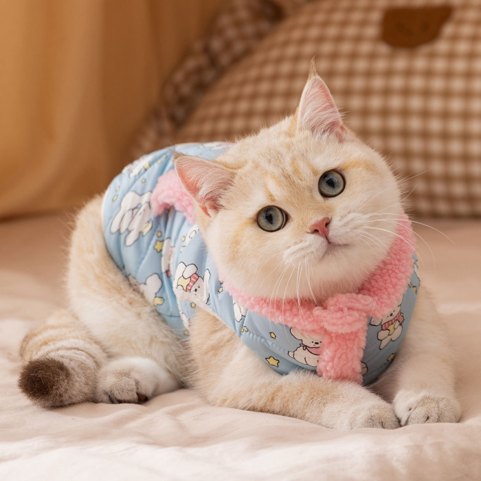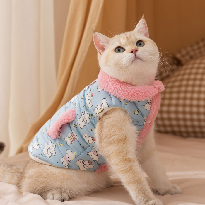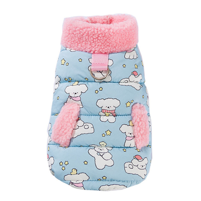 卡通印花寵物棉衣成幼貓秋冬季加絨保暖可牽引泰迪比熊狗狗貓衣服