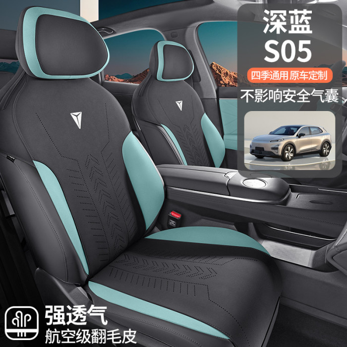 適用於專車專用深藍S05翻毛皮馬鞍墊四季通用半包透氣汽車座墊