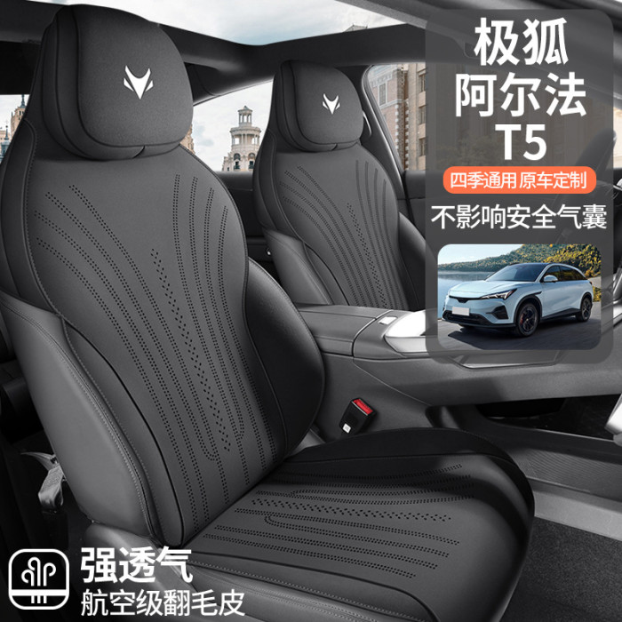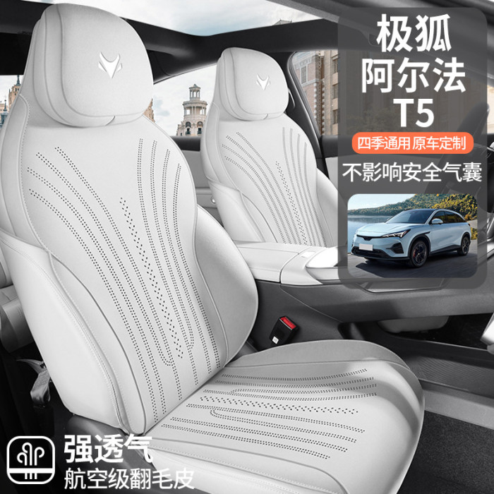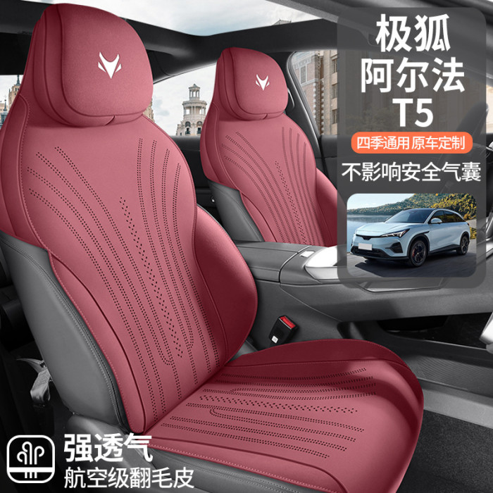 適用於極狐阿爾法T5專車專用翻毛皮馬鞍墊半包坐墊四季通用座椅套