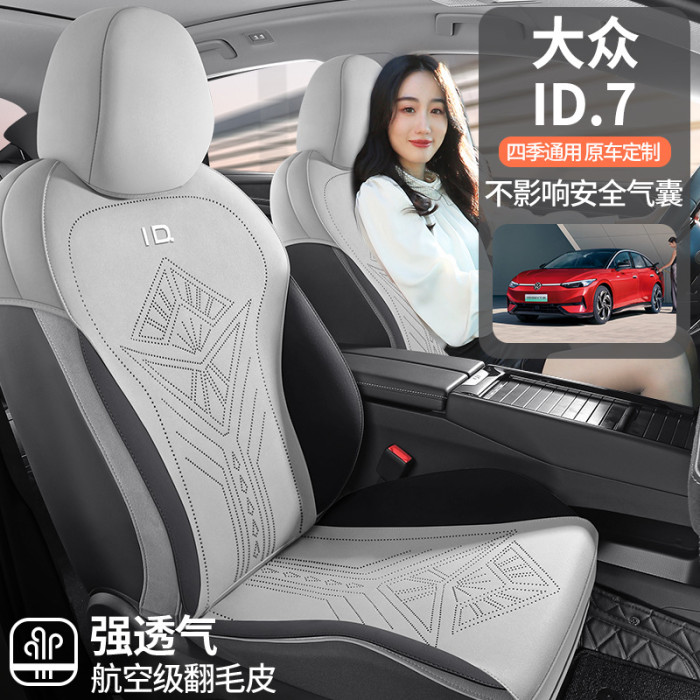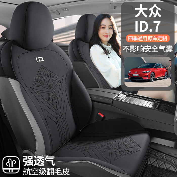 適用於大衆ID7專車專用翻毛皮馬鞍墊半包座椅套四季通用透氣坐墊