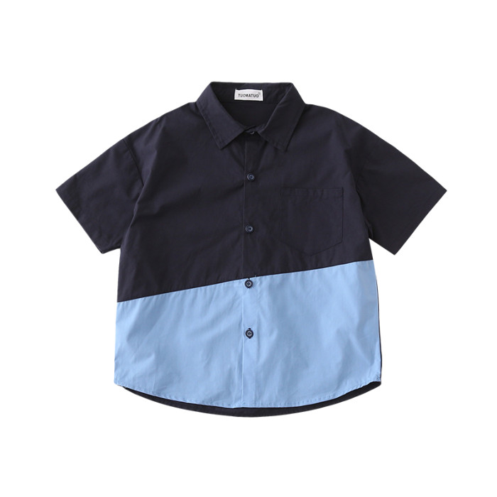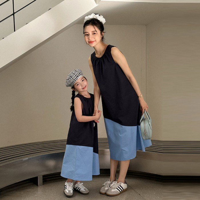 親子裝襯衫2025夏季韓版一家三四口拼接翻領襯衣母女裝背心休閒裙